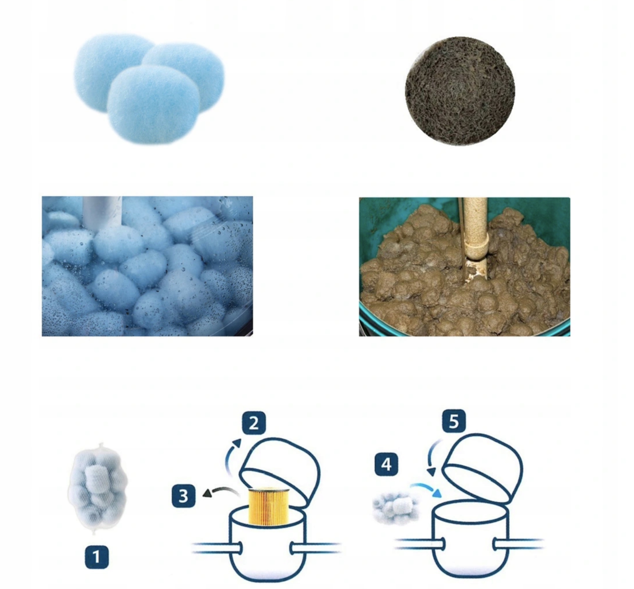 Як використовувати: кульки Silverloon слід розташувати вільно, не розминаючи, замість існуючого фільтра (піску), увімкнути та використовувати фільтруючий насос у звичайний спосіб. Їх колір робить їх чудовим індикатором забруднення, а отже, і якості процесу фільтрації. Наскільки вони брудні, видно з першого погляду. Коли Silverloon забрудниться, просто промийте ліжко під сильним струменем води, виперіть його вручну або навіть у пральній машині, помістивши кульки в сітку. Після прання помістіть його назад у насос. Рекомендується перевіряти стан куль приблизно кожні 4 тижні. При такому використанні Silverloon легко прослужить 5-7 років, залежно від розміру басейну та ступеня забруднення фільтра, забезпечуючи кришталево чисту воду. Найкраще те, що вам доведеться промивати систему фільтрів басейну лише чотири рази на рік, а не чотири рази на місяць! З екологічної точки зору, це чудова новина для нашого водоносного горизонту, а також для нашого гаманця під час оплати рахунків за воду!