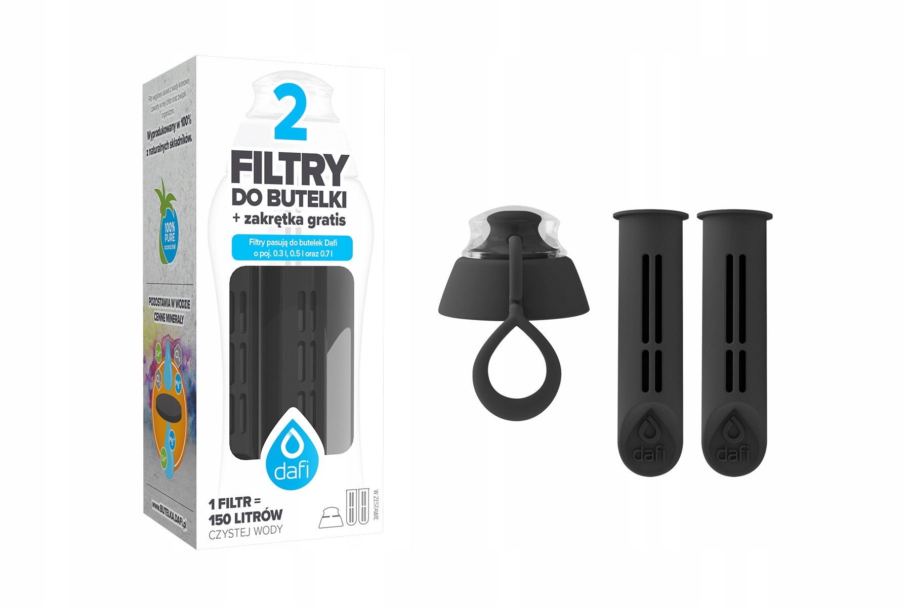 Фільтр для пляшки фільтра DAFI (2 шт.) + новий ковпачок - ЧОРНИЙ