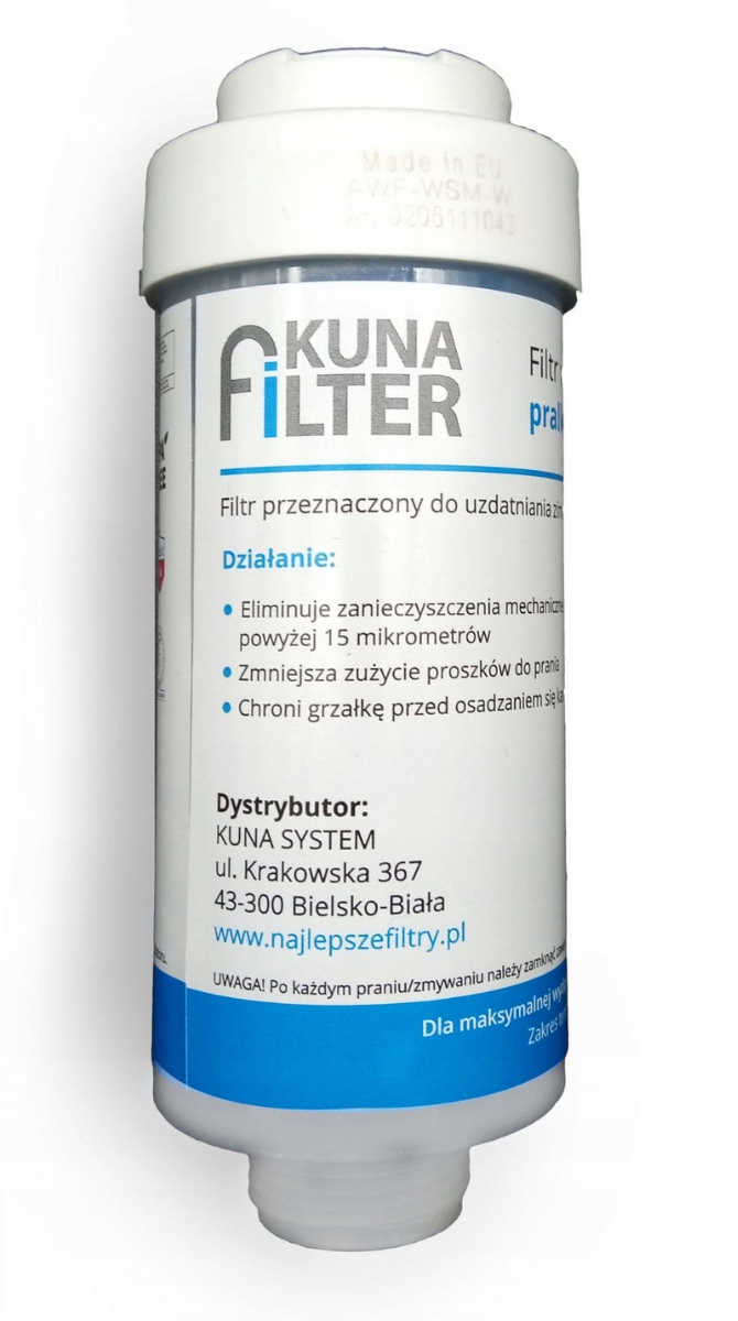 Фільтр для пральної або посудомийної машини Kuna Filter використовується для очищення холодної води, що подається в пральну або посудомийну машину. Його завдання — зменшити жорсткість води та підвищити ефективність миючих засобів.