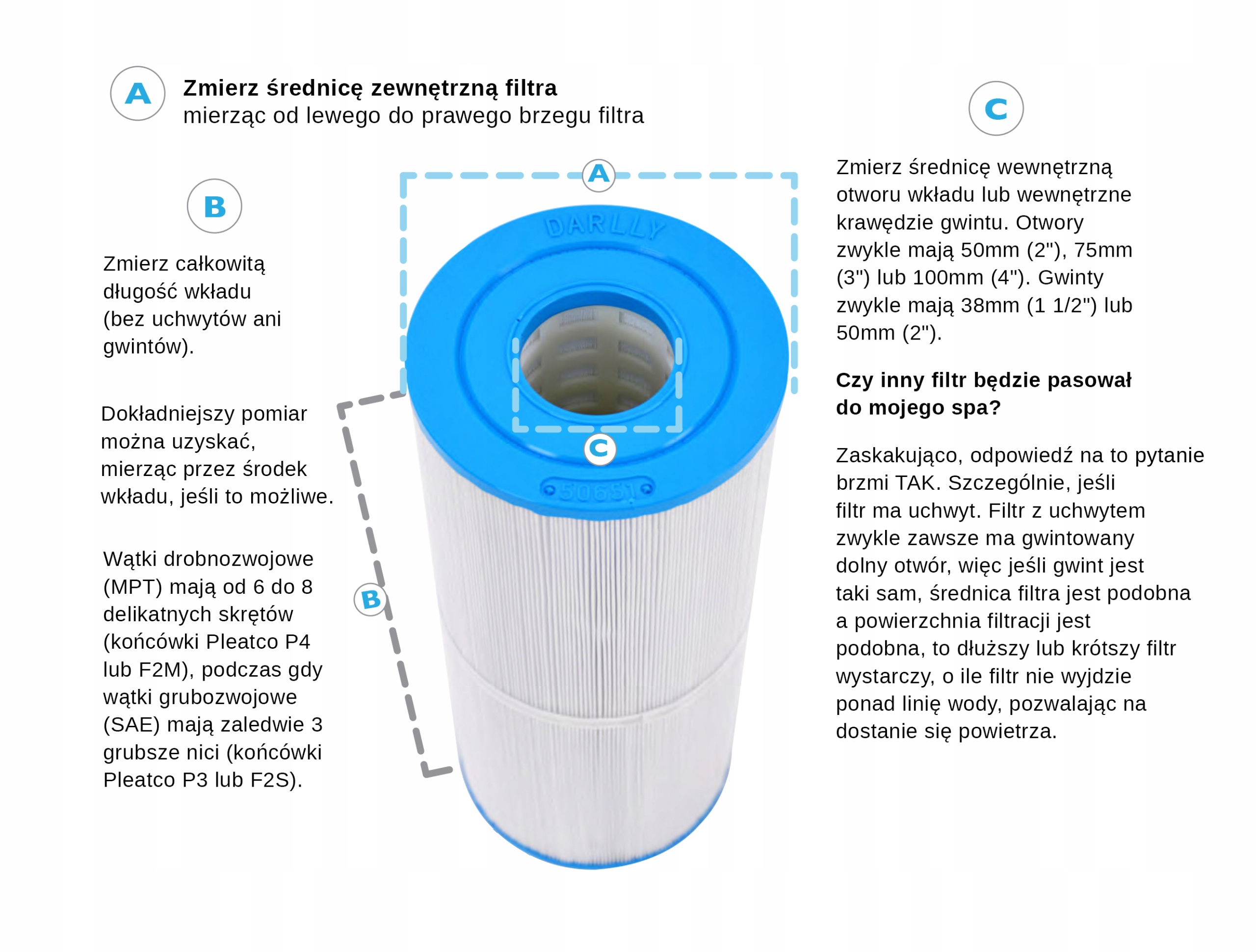 БРЕНД Дарллі ВИСОТА ФІЛЬТРУ 21 см ДІАМЕТР ФІЛЬТРУ 15 см ФІЛЬТР ВЕРХ Ручка ФІЛЬТР НИЖНИЙ Груба (SAE) зовнішня різьба 3,8 см ЗОНА ФІЛЬТРІВ 50 КОД ДАРЛІ 60401 КОД UNICEL 6CH-940 КОД PLEATCO PWW50P3 СПА БРЕНД Спа Каталіна