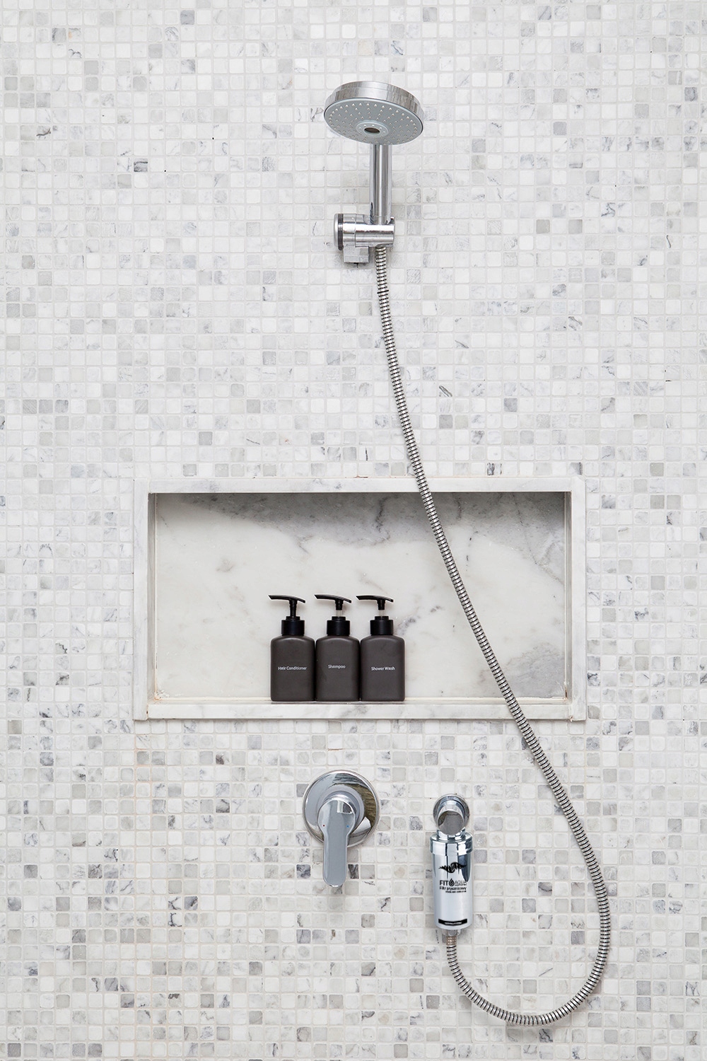 - запобігає утворенню накипу на душовій кабіні, фурнітурі, плитці