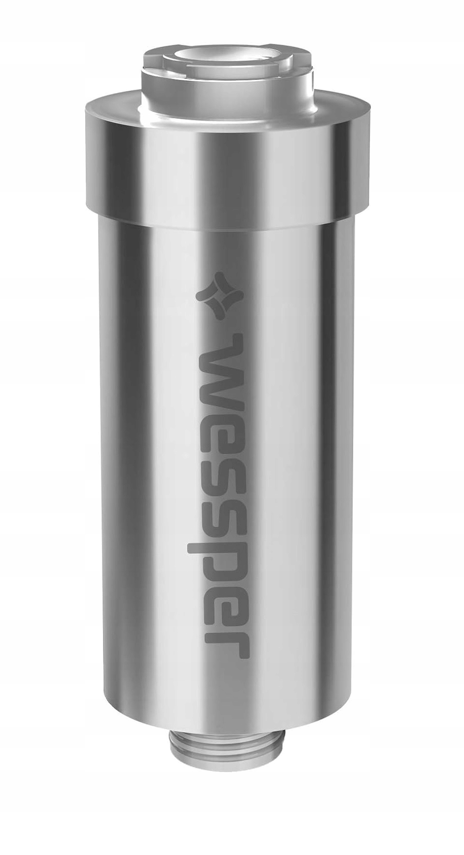 Фільтр для душу торгової марки Wessper, виготовлений з нержавіючої сталі, призначений для очищення води, що надходить до душові лійки та тропічний душ. Його робота заснована на використанні властивостей сплаву KDF, тобто цинко-мідних відкладень і поліфосфату. Завдяки цьому він ефективно нейтралізує бактерії та важкі метали, а такожусуває вміст у воді солей кальцію та магнію, які підсушують нашу шкіру. Цей продуктрекомендовано для алергіків і людей з атопічним дерматитом.