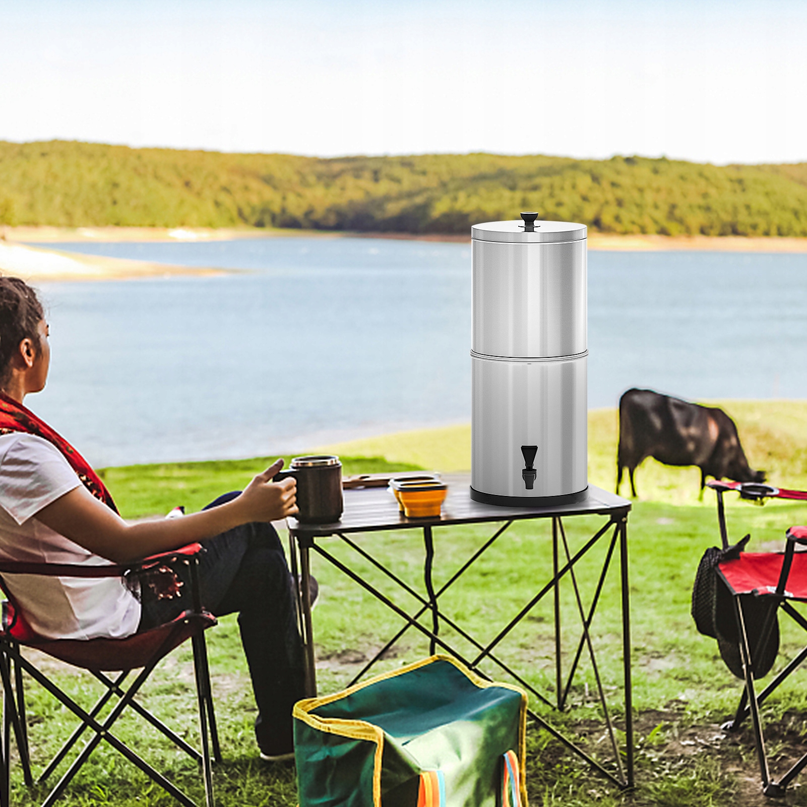 - Енергозбереження: гравітаційна система фільтрації води розділена на верхній і нижній шари. Верхній шар може бути заповнений нефільтрованої водопровідною водою, а нижній шар отримує чисту воду після фільтрації. Оскільки він не вимагає електроенергії, його можна використовувати як у приміщенні, так і на вулиці.