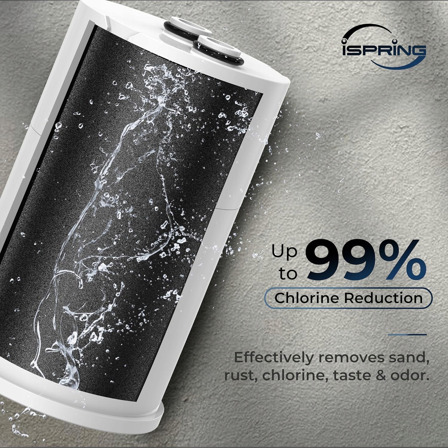 Фільтр для водопровідної води iSpring DFGB1S, вугільний фільтр для водопровідної води для дому та кухні, зменшує хлор, накип, важкі метали та неприємні запахи, срібло