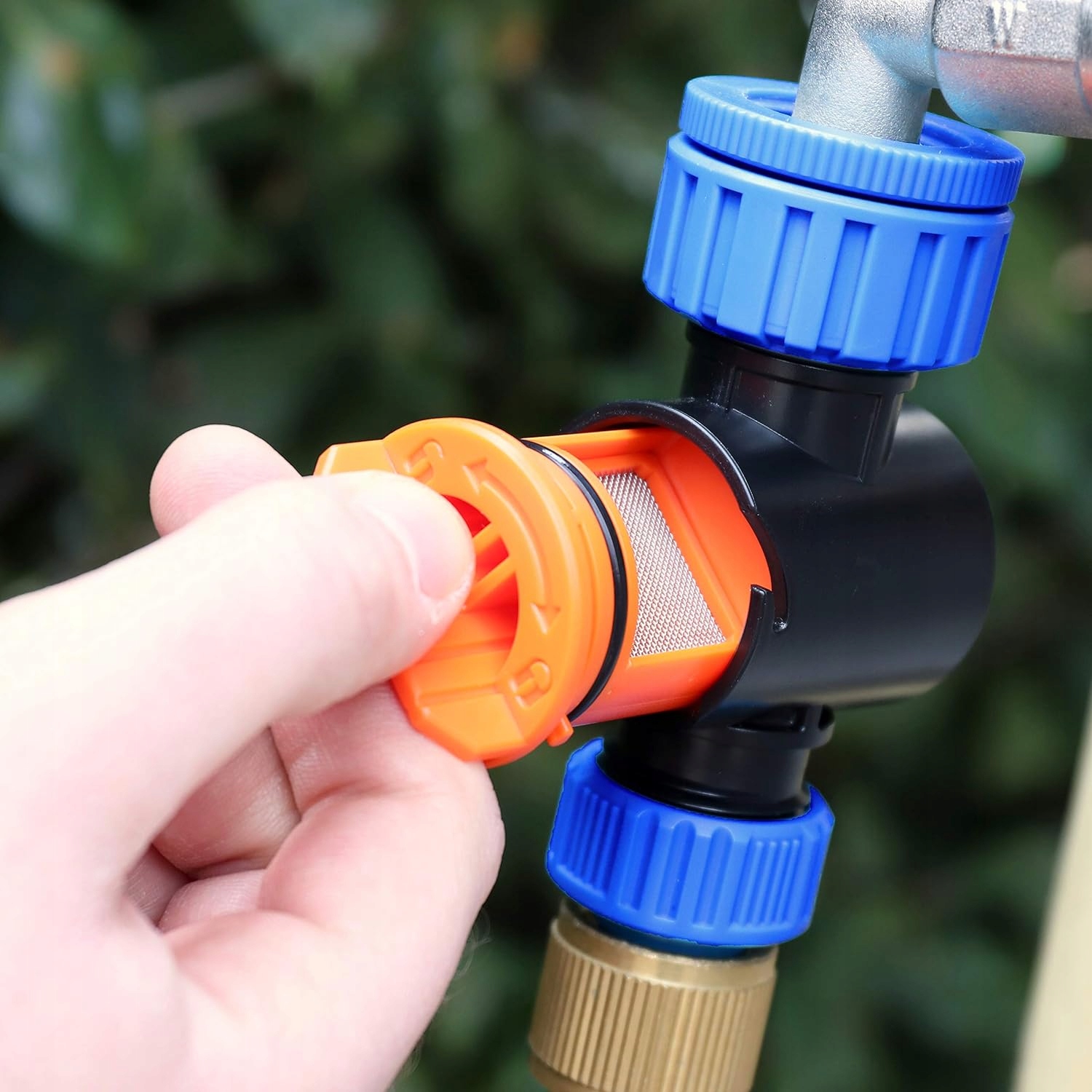 Використовуючи з’єднувачі 1/2" і 3/4", ви можете швидко та легко підключатися до всіх часто використовуваних різьбових садових кранів. Швидкий з’єднувач можна відкрутити, що дозволяє встановити гвинтове з’єднання 1/2 дюйма.