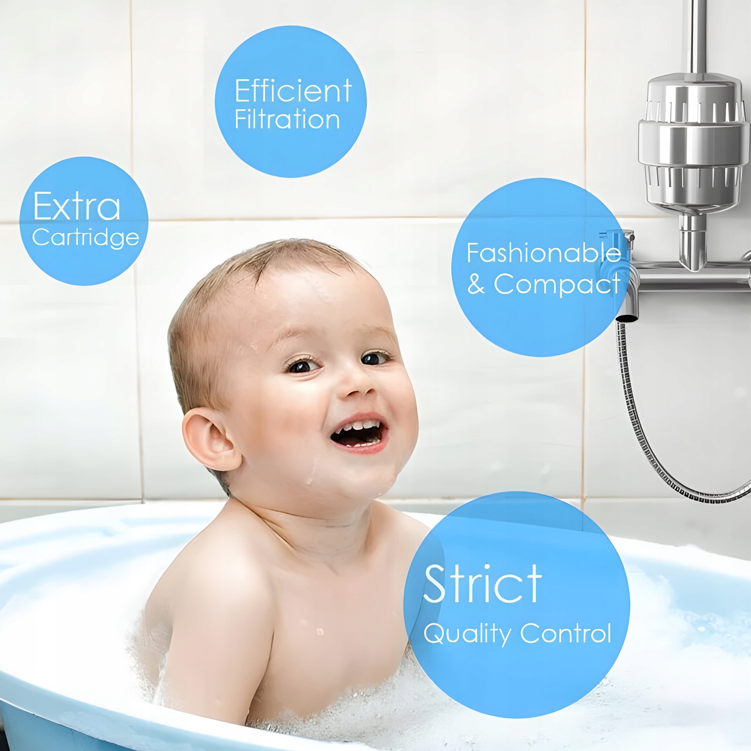 3. З 2 фільтрувальними картриджами: Водний фільтр оснащений 2 замінними вставками фільтрів. Один знаходиться в упаковці, а другий у фільтрі для душу. Вставки фільтрів можна використовувати протягом 5-6 місяців. Це стосується води водопостачання.