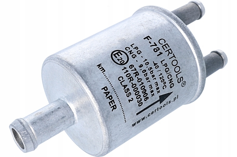одноразовий фільтр в алюмінієвому корпусі із загальною довжиною 98 міліметрів. Вхід газу діаметром діаметром 12 міліметрів, три вихідні з'єднання з діаметром 8 міліметрів, фільтруюча вставка з тканинного паперу, вказана на напрямку корпусу потоку газу. Кваліфікаційний тиск 450 кПа, обсяг рекомендованої робочої температури від -40 градусів Цельсія до +120 градусів Цельсія.