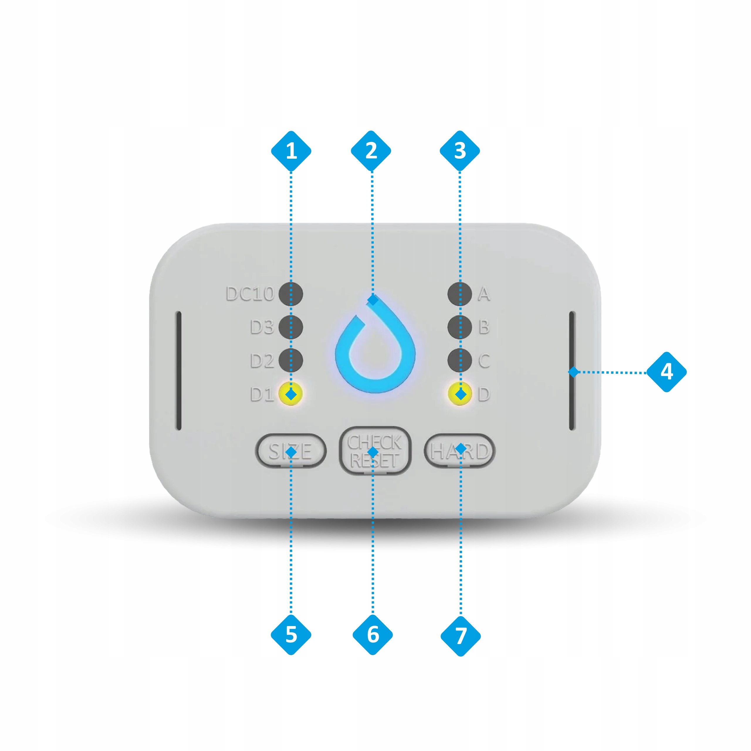 Головка фільтра має 4-градусне регулювання пом'якшення води. Налаштування рівня фільтру слід передувати, визначивши твердість водопровідної води за допомогою тестування тестування , що входить до набору. Інформація про твердість також надається місцевими фабриками водопостачання.