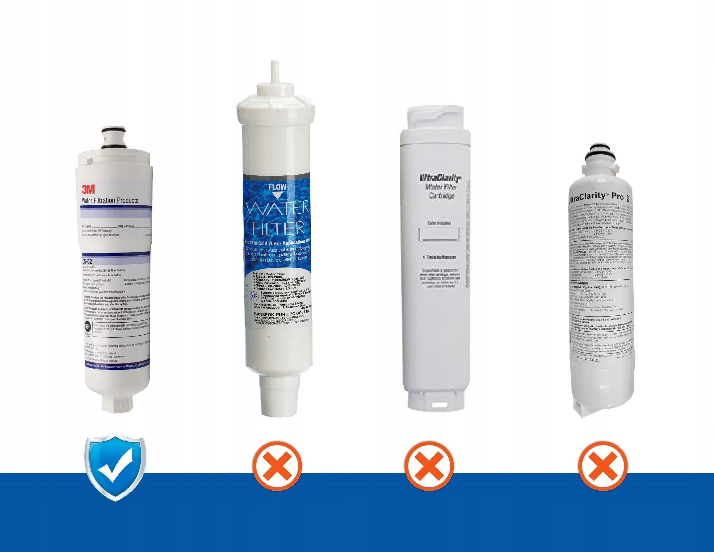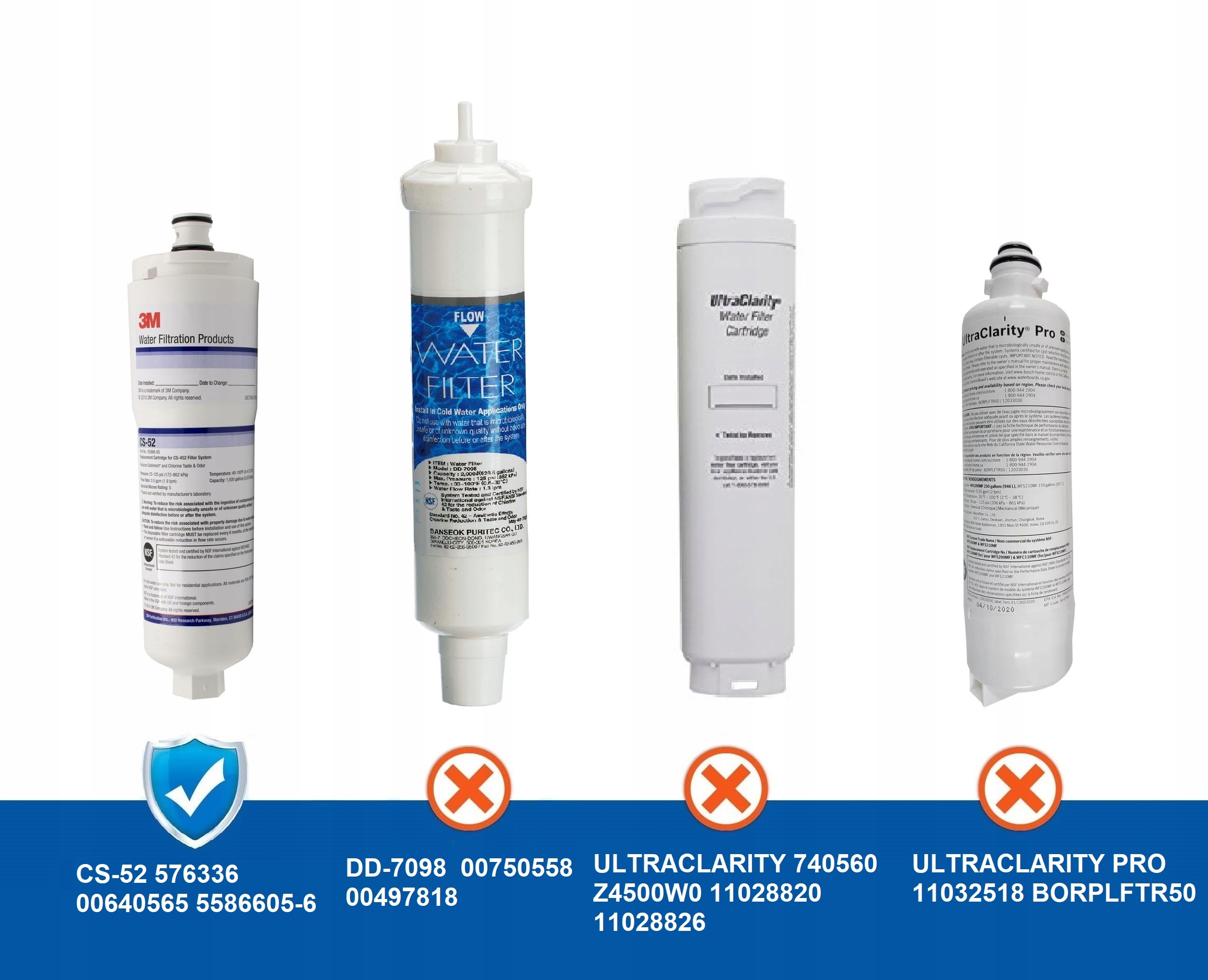 Якщо у вашому холодильнику є фільтр, позначений моделлю: 5586605, 640565, 5586606, CS-51, CUNO OCS CS-51, CUNO OCS CS-52, і не є у списку нижче, фільтр, безумовно, відповідає холодильнику.