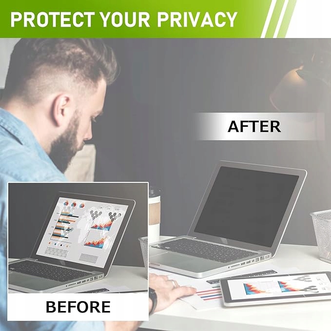 - 【Багатофункціональність і захист конфіденційності】Особливості загального захисту екрану ноутбука, як-от аналогічний екран захист, антивідблиски, стійкість до подряпин, висока прозорість. Цей магнітний фільтр конфіденційності з екраном є ідеальним рішенням для відкритих офісів, університетів, фінансових установ і ділових поїздок!