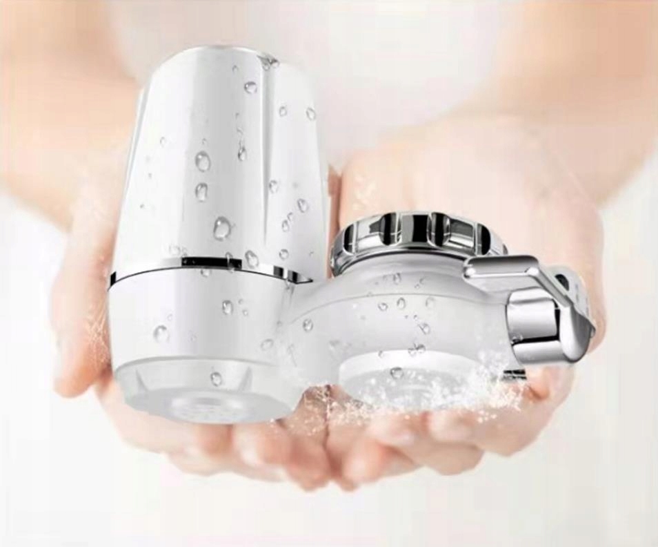 - Фільтр білий домашній кран із сріблястими елементами