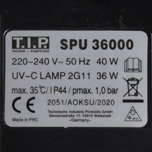 - Номінальна потужність УФ-C нитки: 36 Вт