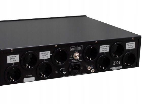 Професійний кондиціонер з вісьмома розетками Schuko (4 перемикаються розетки та 4 неперемикаються розетки), спеціально розроблені для використання з різними аудіо- та відеопристроями.