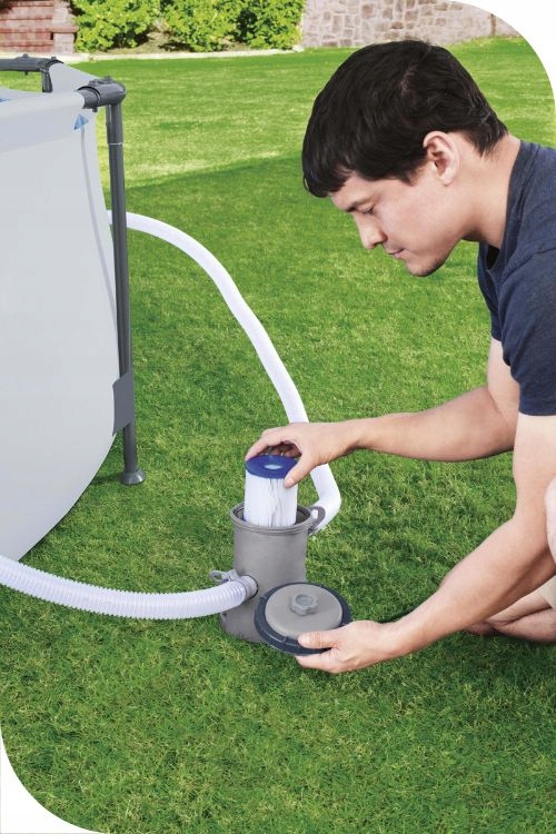 Лінія аксесуарів Flowclear™ пропонує низку основних продуктів для догляду за басейном. Ви можете знайти найбільш підходящий продукт відповідно до ваших потреб. Електронасос фільтрує воду від усіх домішок продуктивністю 1249 л/год. У комплект входять шланги та з'єднувачі необхідні для підключення насоса. У комплект входить один картриджний фільтр I типу, індекс 58093. Фільтри слід промивати проточною водою кожні2-3 дні та замінювати кожні2 тижні.