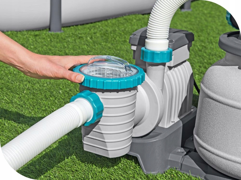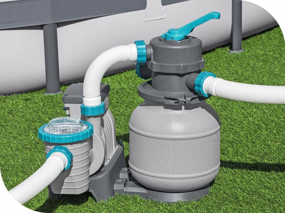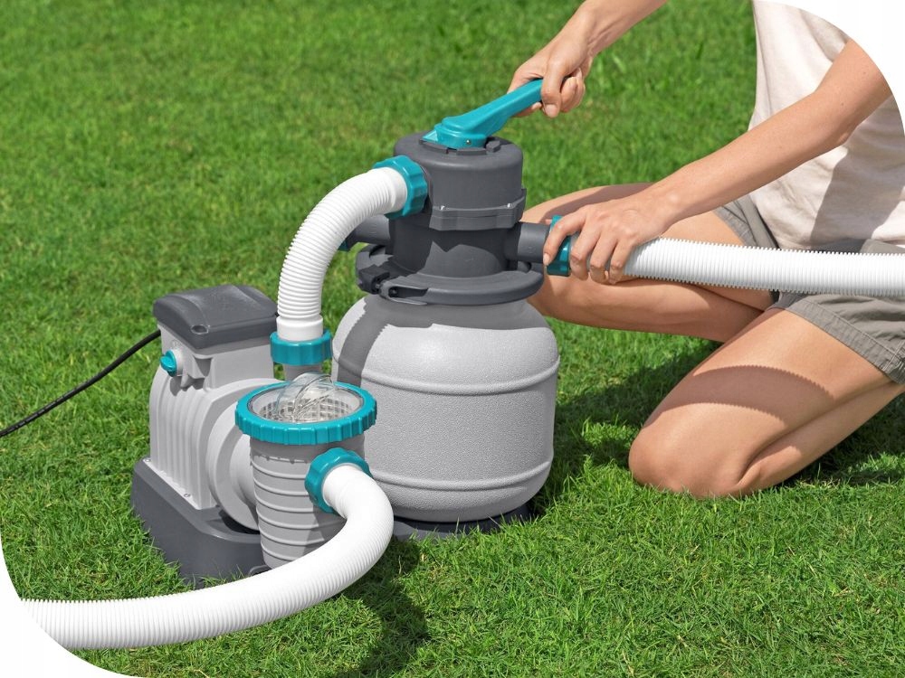 Піщаний насос є більш ефективним, ніж насос фільтру - піщана вставка замінюється після сезону . піщаний фільтр вимагає незначного обслуговування для належної роботи. Бак фільтра міцний , стійкий для корозії . Практичний клапан дозволяє керувати шістьма функціями: фільтрування , промивання , промивання , рециркуляція , спорожнення , зупинка . Насос має вбудований таймер - надає можливість легко програмувати автоматичні робочі цикли. Він також оснащений попереднім резервуаром фільтром , який, згідно з ним, полягає у захопленні більших домішок, таких як листя, волосся або бруд. Завдяки цьому захищає ротор насоса, а забезпечує тривалий термін експлуатації продукту. Верхній фланець у насосі скручується на 360o, завдяки якому збірка швидка і проста. Він має побудований - в моніторі артеріального тиску - контроль тиску уникне дорогих збоїв або необхідності автоматичного очищення насоса. Набір включає змій та роз'ємів , необхідних для підключення насоса. Піщані насоси FlowClear ™ є