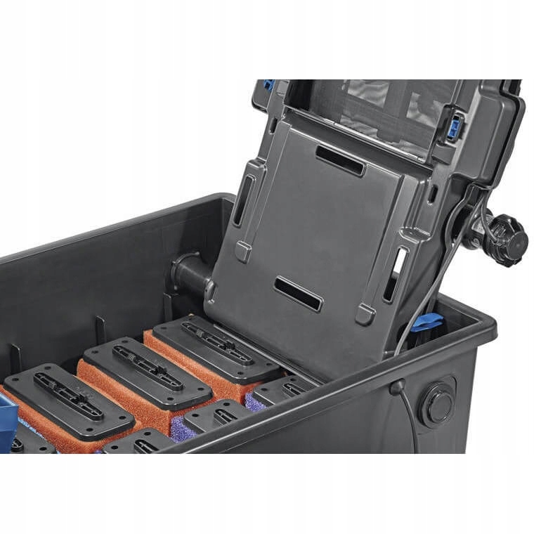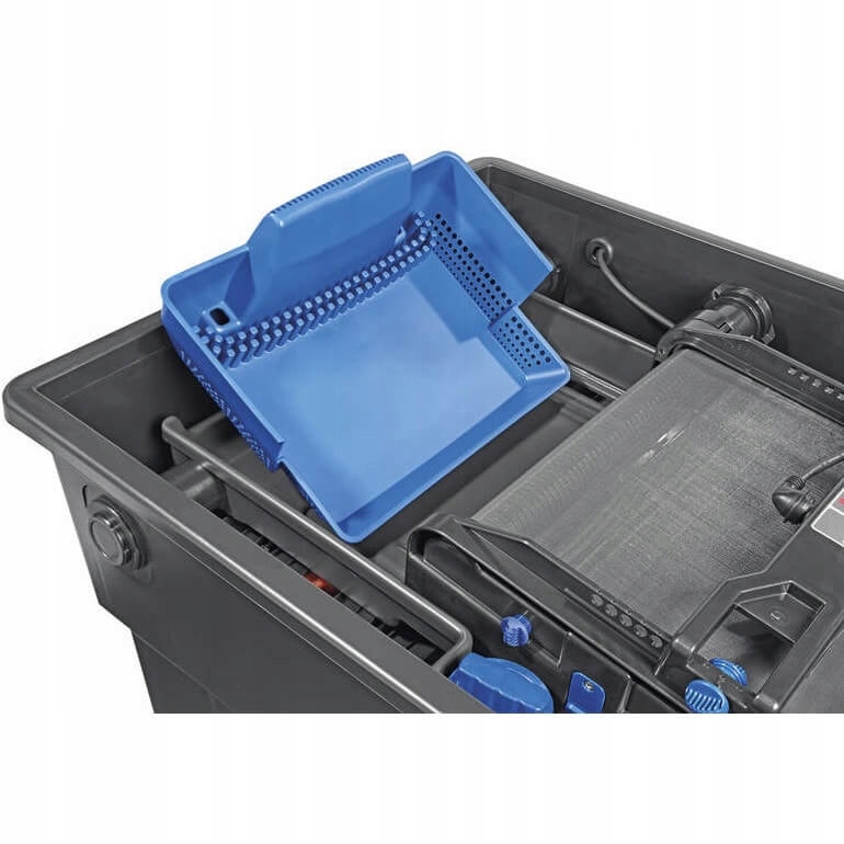 Переливний фільтр Oase BioTec ScreenMatic² 40000 для ставка або водойми, що забезпечує повне механічне та біологічне очищення води. Фільтр комплектується набором фільтрувальних картриджів - 2 синіх губки, 3 червоних губки, 3 шт. фіолетових губок і 2,5 кг спеціальних гранул. Губки ефективно затримують великі види бруду під час потоку води, а також забезпечують поверхню для осадження корисних нітрифікуючих бактерій, які розщеплюють органічні забруднювачі.