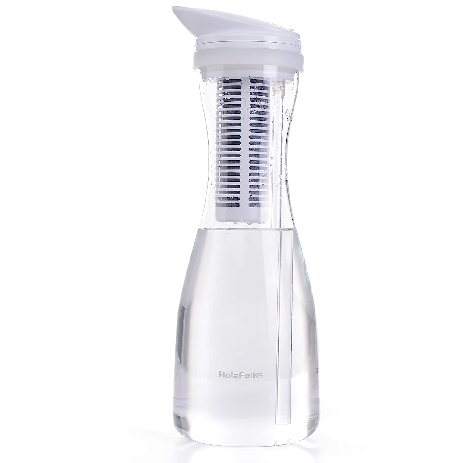 Глечик для води HolaFolks, високоборатне скло, 3 шари вуглецевого волокна та магнієвий фільтр, рН 8,5, видалення 99,6%, поглинання хлору та важких металів.