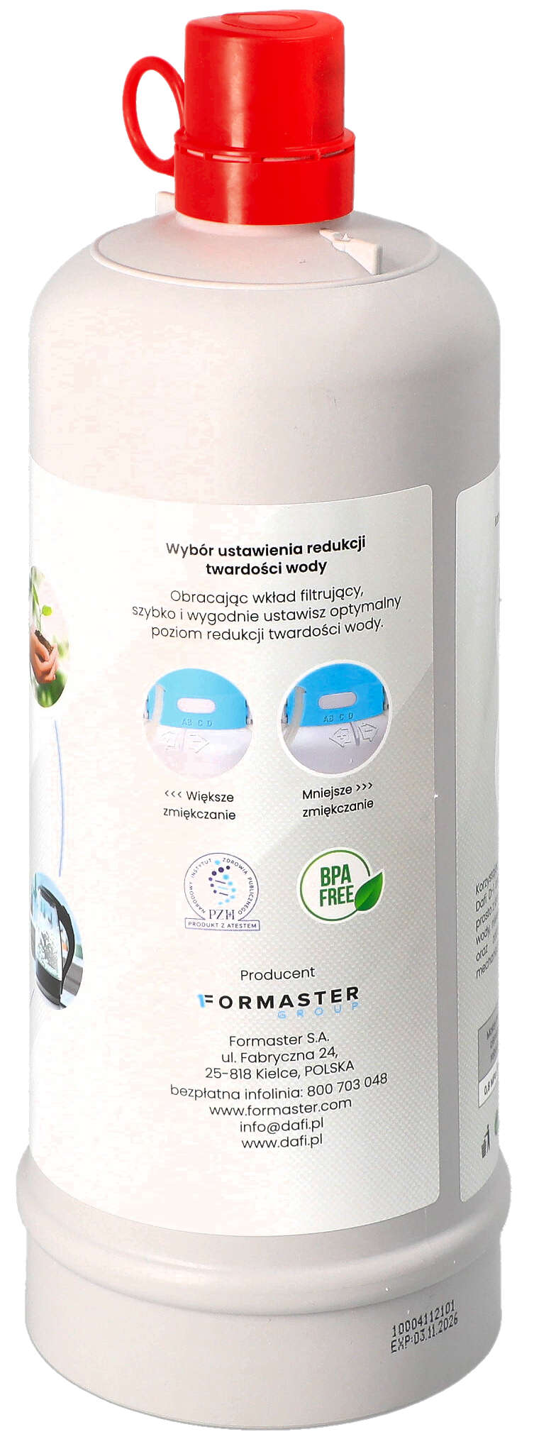 Встановлення проточного картриджа, що фільтрує водопровідну воду, до системи Dafi Flow Comfort-D1 надзвичайно просте та займає лише кілька хвилин. Спосіб установки докладно описаний в інструкції, що додається до комплекту. Термін служби фільтра до 365 днів в залежності від жорсткості водопровідної води. У разі дуже жорсткої водопровідної води та великого споживання фільтр працює 60 днів.