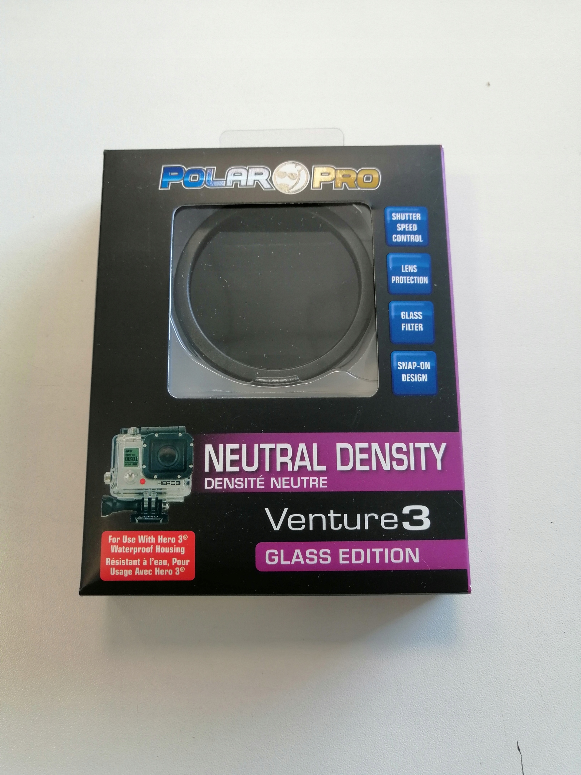 Нова версія ND-фільтра цього разу для Hero 3 — скляна. Великою перевагою є більша стійкість і довговічність порівняно з попередньою пластиковою версією.