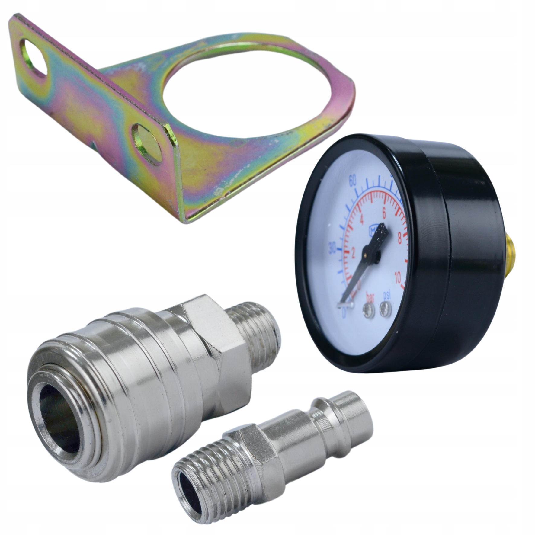- Шкала манометра: 0–10 бар / 0–150 psi