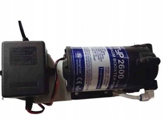 Повний електричний насос для фільтрів зворотного осмосу. Він покращує ефективність осмотичної мембрани за рахунок підвищення тиску. Насос РОПОМП, підвищуючи тиск, позитивно впливає на кількість води, що скидається в каналізацію, і на час заповнення резервуара.