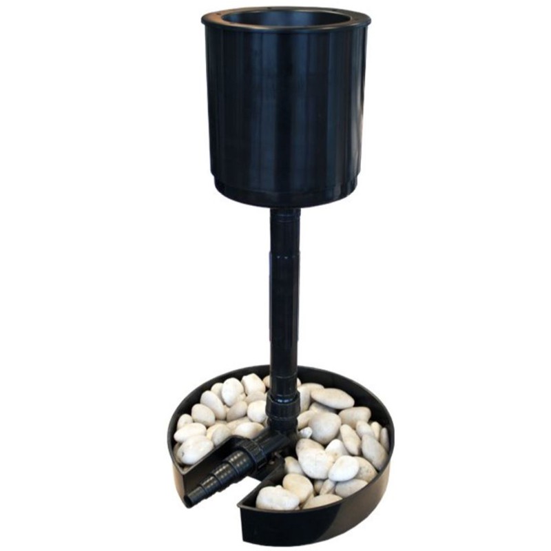 Встановлення надзвичайно просте. Просто опустіть скиммер у воду. Засипте його основу камінням, відрегулюйте його висоту, а потім під’єднайте до водяного насоса.