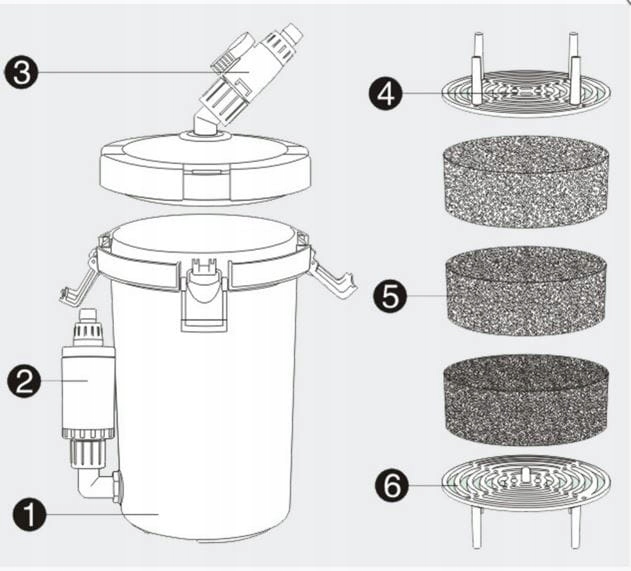 Prefiltr відра - це недорогий фільтр для більшого прісноводного та морського резервуару. Він підтримує роботу нашого зовнішнього фільтра, звільнивши його від механічного очищення акваріуму, обмежує кількість домішок, що потрапляють у правильний фільтр. Завдяки цьому зовнішній фільтр може працювати більш ефективно. Він оснащений насосом 6 Вт і ємністю 400 л/год