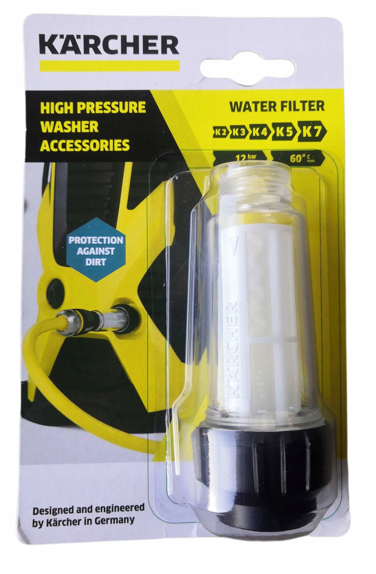 Фільтр для води захищає насос пристрою високого тиску від забруднень, які містяться у воді. Це продовжує термін служби пристрою високого тиску. Призначений для всіх побутових приладів високого тиску Kärcher K2 - K7