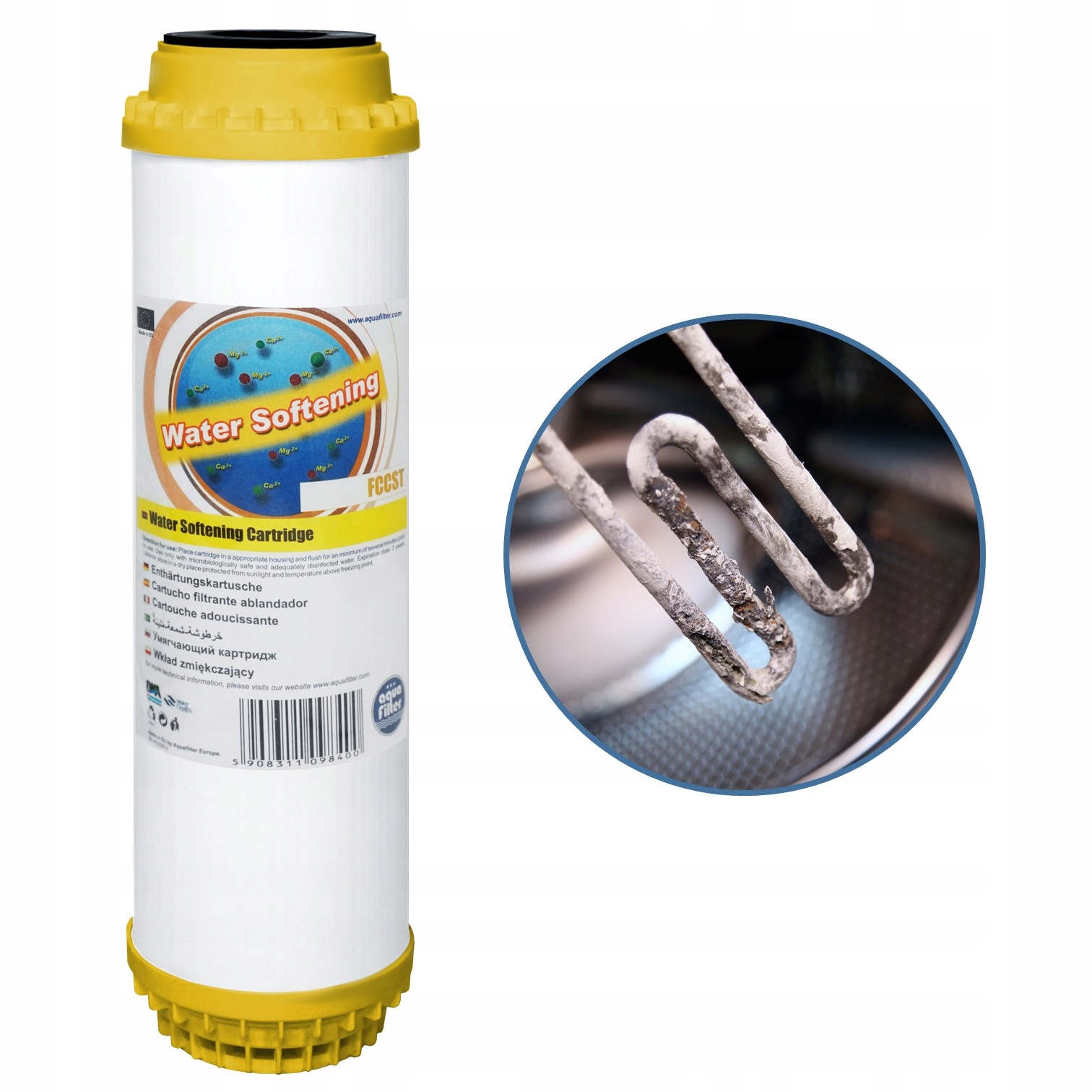 Видаляє з води іони кальцію та магнію, замінюючи їх нешкідливими іонами натрію .