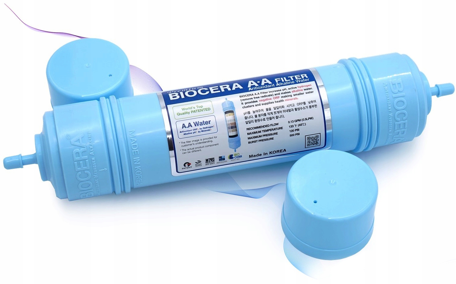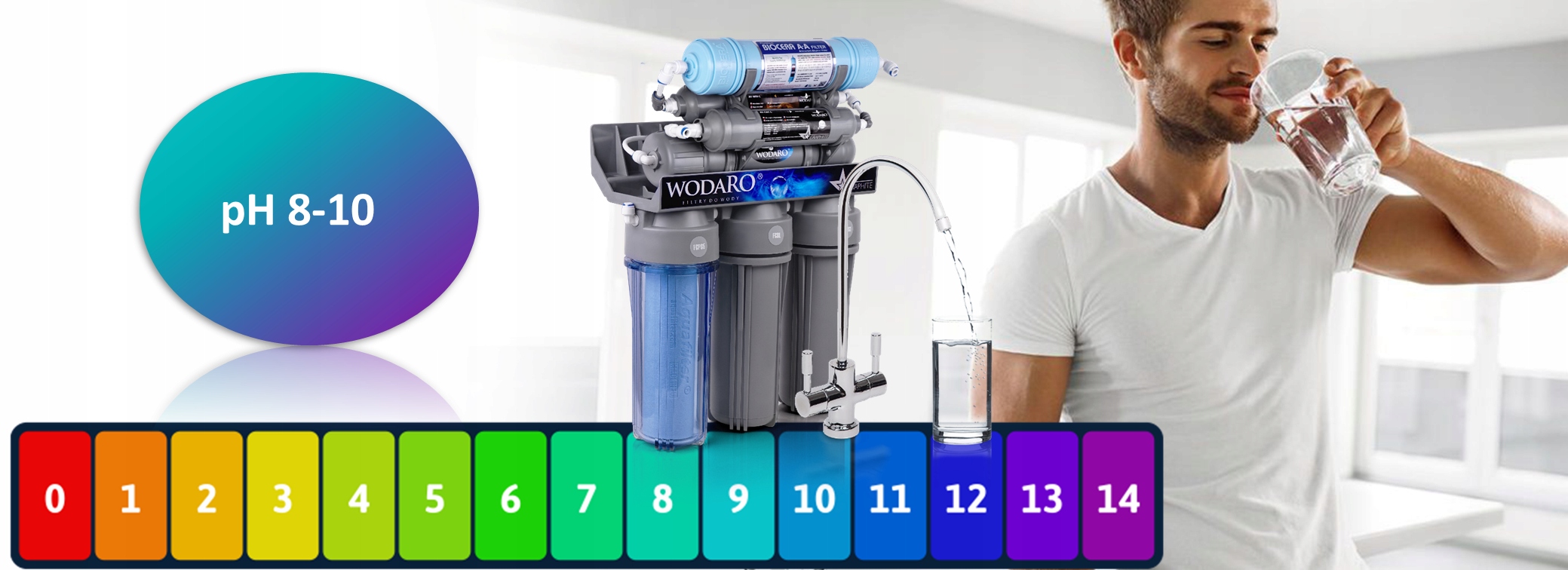 7. BIOCERA – іонізуючий картридж. Картридж насичує воду воднем, таким чином знижуючи її REDOX потенціал. Це підвищує рН води. На практиці це означає, щотоді вода стає ефективним антиоксидантом. Як антиоксидант, водень зв’язує шкідливі для організму вільні радикали, які, якщо їх залишити без пари, дегенерують наше тіло. Іонізована вода має багато застосувань, зокрема благотворно впливає на процеси травлення, підтримує функцію нирок, регулює кислотно-лужний баланс, виводить токсини та знекислює організм.