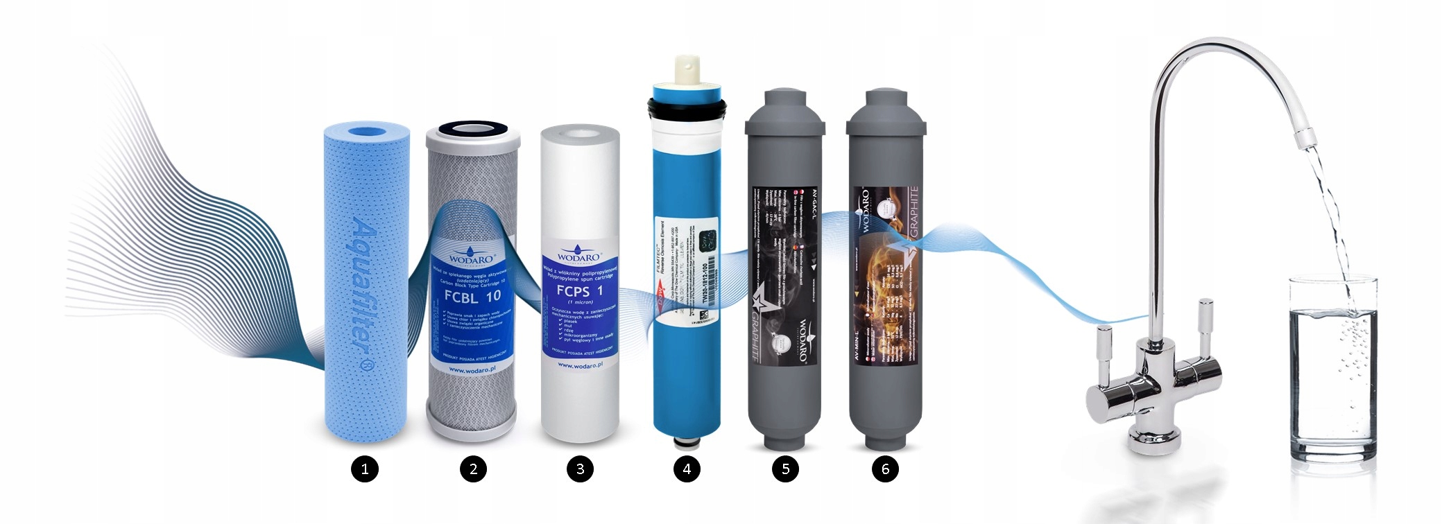 Вода, що протікає через цю систему, проходить 6 ступенів фільтрації: