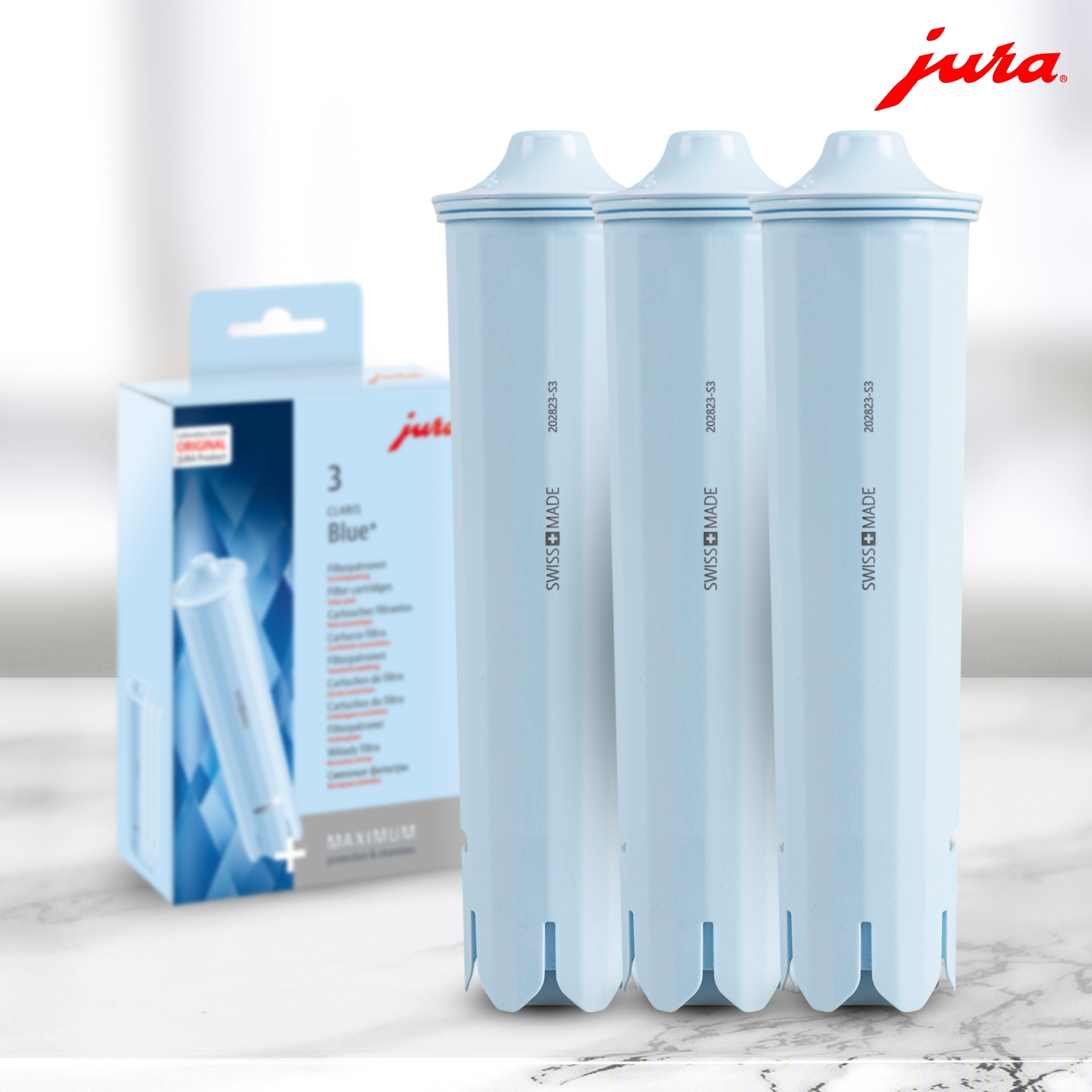 вставки Claris синій+ не тільки очищають воду, але й активно захищають кавову машину проти побічних ефектів твердості води, наприклад, каменю з депозитування. Claris Blue+ вставляє не лише очищення води, але й ефективно захищає відкладення еспресо - головним чином завдяки захисту резервуара для води. позначення "+" в імені відноситься до цієї додаткової захисної функції, яка підтримує підтримку чистоти всієї системи та перетворюється на надійність роботи пристрою. Завдяки цьому користувач може щодня насолоджуватися ідеально завареною кавою, без необхідності частого сідання та ризику зниження продуктивності системи опалення.
