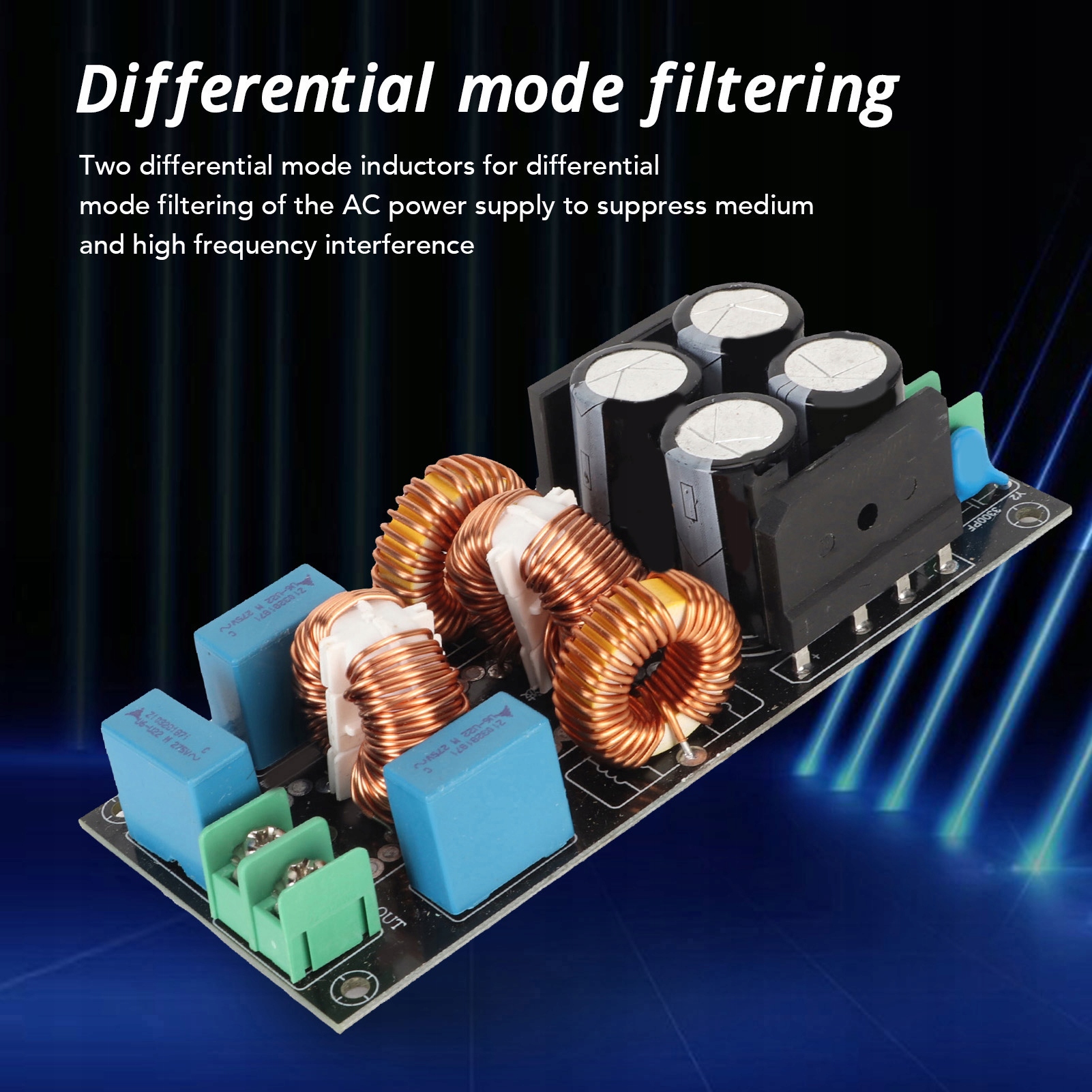 4. Фільтрування диференціального режиму: Дві індукційні котушки диференціального режиму, фільтрація диференціального режиму чергування живлення струму для придушення перешкод високої та середньої частоти.