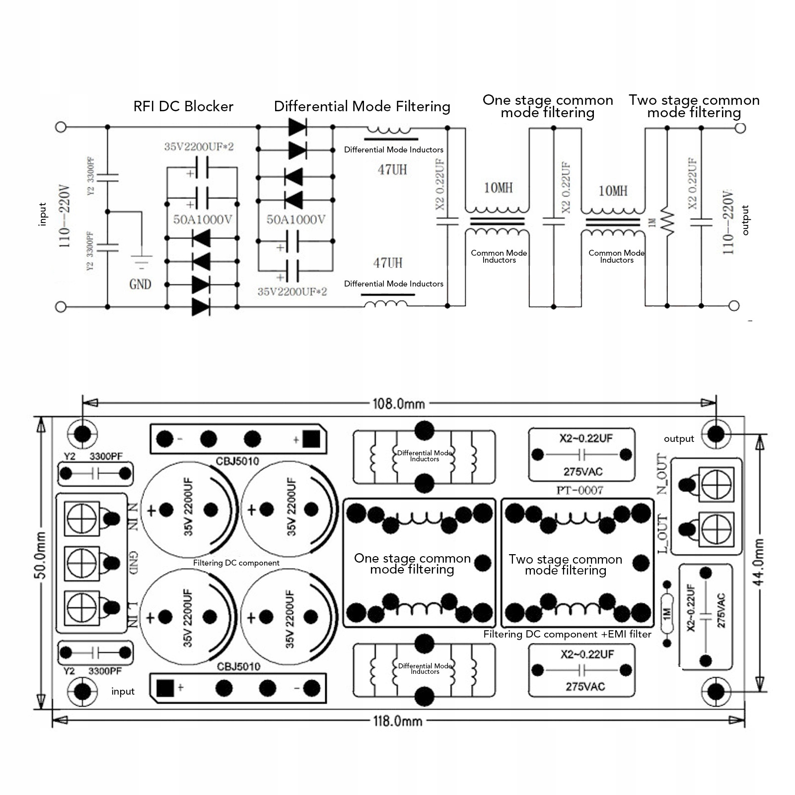 5. Загальна фільтрація режиму: Загальний режим на одній стадії підключений конденсатором X2 та індукційною котушкою загального режиму. Фільтрування на двох стадіях у загальному режимі є більш ефективним у фільтрувальному шумі завдяки використанню фільтрації двох стадій.