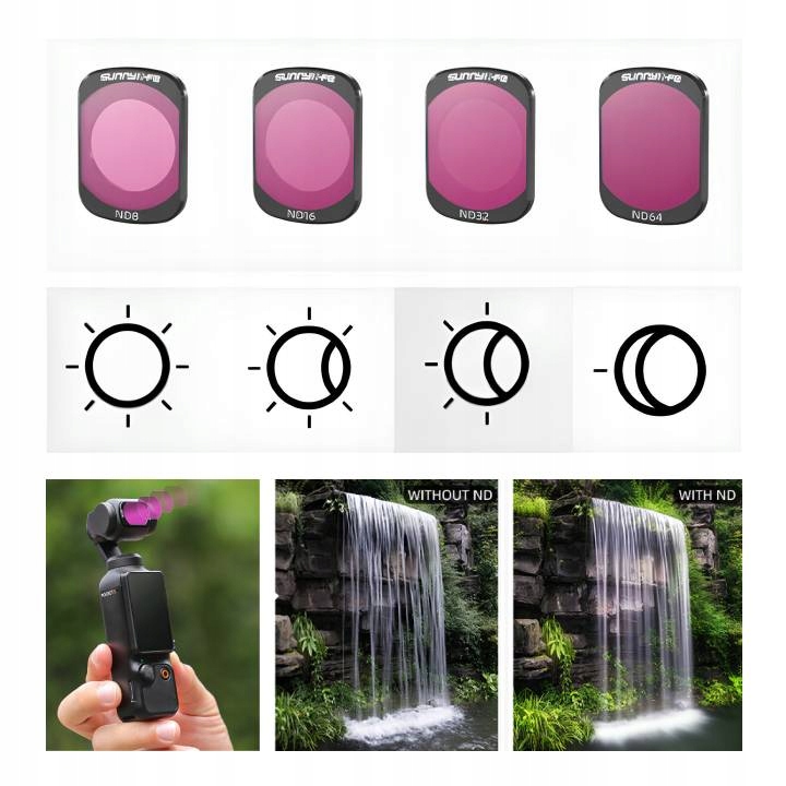 ✔️ Зменшення світла (ND8) 3 ступені, (ND16) 4 ступені, (ND32) 5 зупинок, (ND64) 6 зупинок
