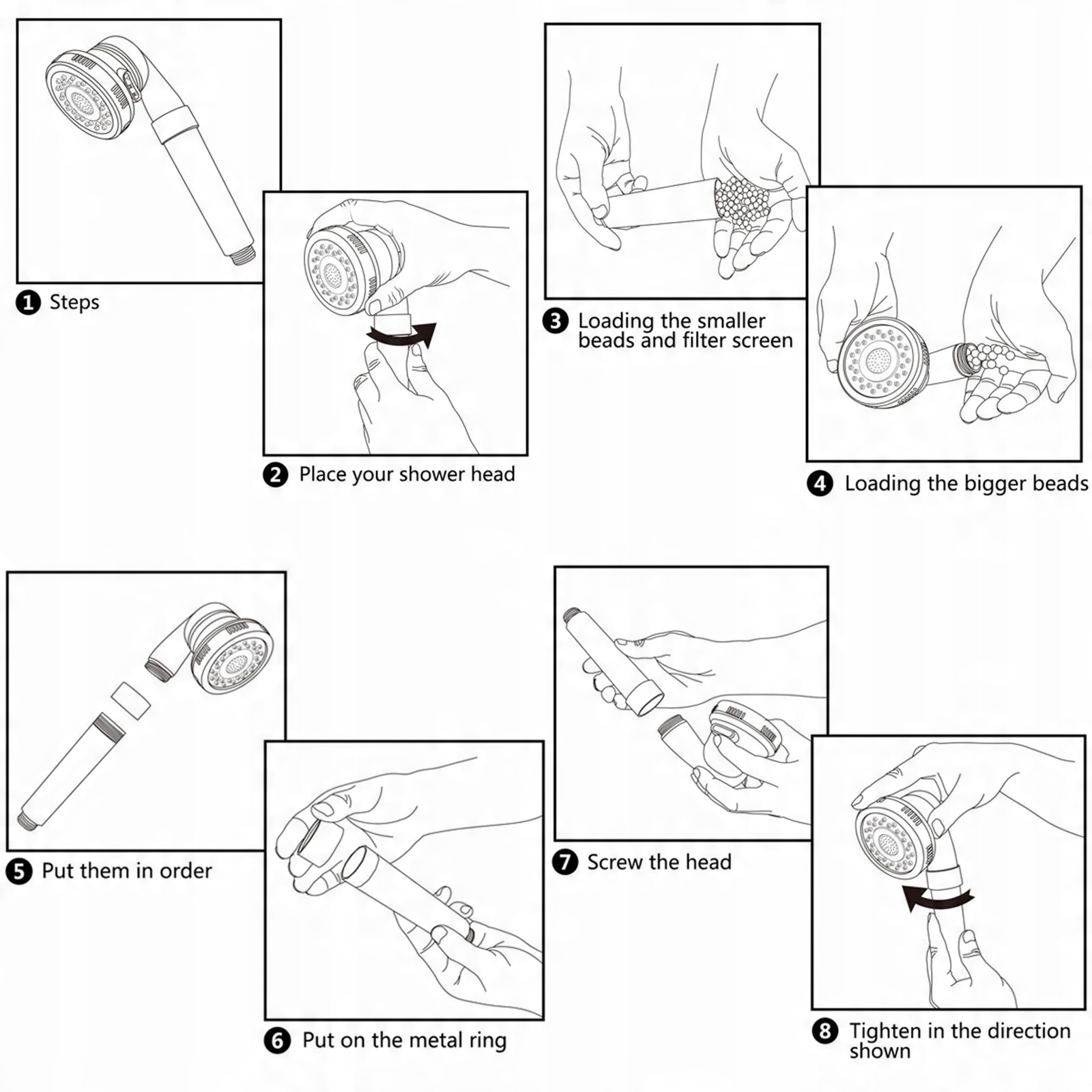 Це приємне та повне поєднання мінералів допомагає очистити та пом’якшити воду для душу. Ці фільтрувальні кульки зроблять воду для душу здоровішою та придатною для купання. Підходить для різних душових насадок із шаром фільтра, ідеально підходить для дому, готелю, готелю тощо.