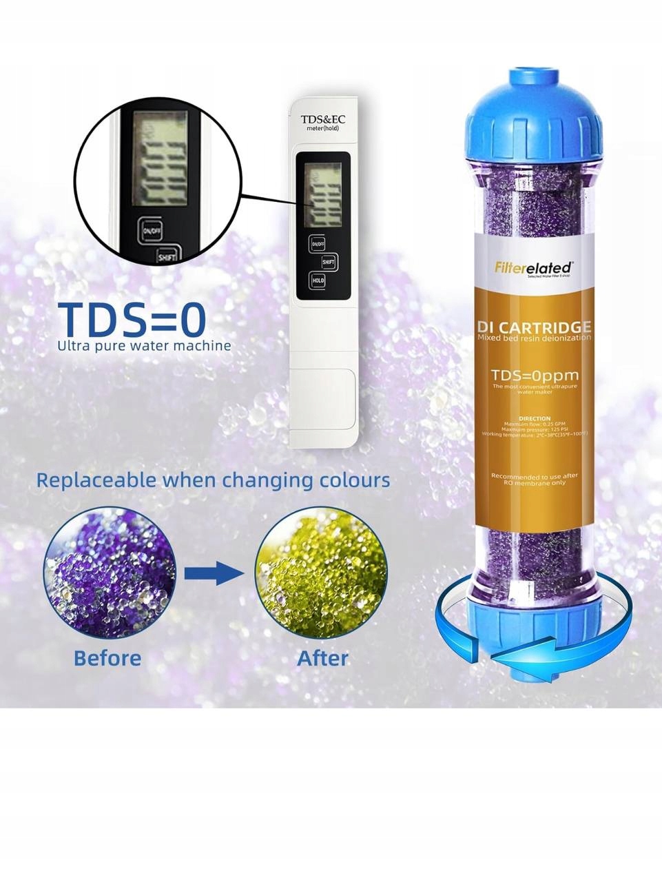 - Смола дежонізації видаляє іонні залишки, забезпечуючи воду з TDS = 0 проміле.