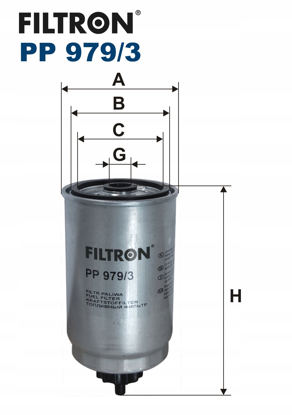 Просматривая «Filtron PP 979/3 Filtr paliwa», вы можете быть уверены, что данный товар из каталога «Топливные фильтры» будет доставлен из Польши и проверен на целостность. В цене товара, указанной на сайте, учтена доставка из Польши. Внимание!!! Товары для Евросоюза, согласно законодательству стран Евросоюза, могут отличаться упаковкой или наполнением.