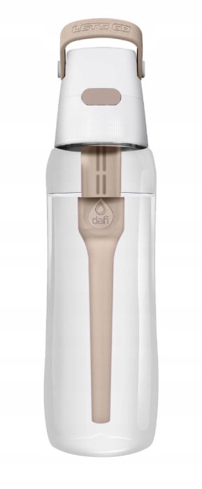 Бежева пляшка з фільтром Dafi створена для людей, які дбають про екологію та ведуть активний спосіб життя, де це незамінне під час подорожі, прогулянки чи роботи є пляшка прісної води.
