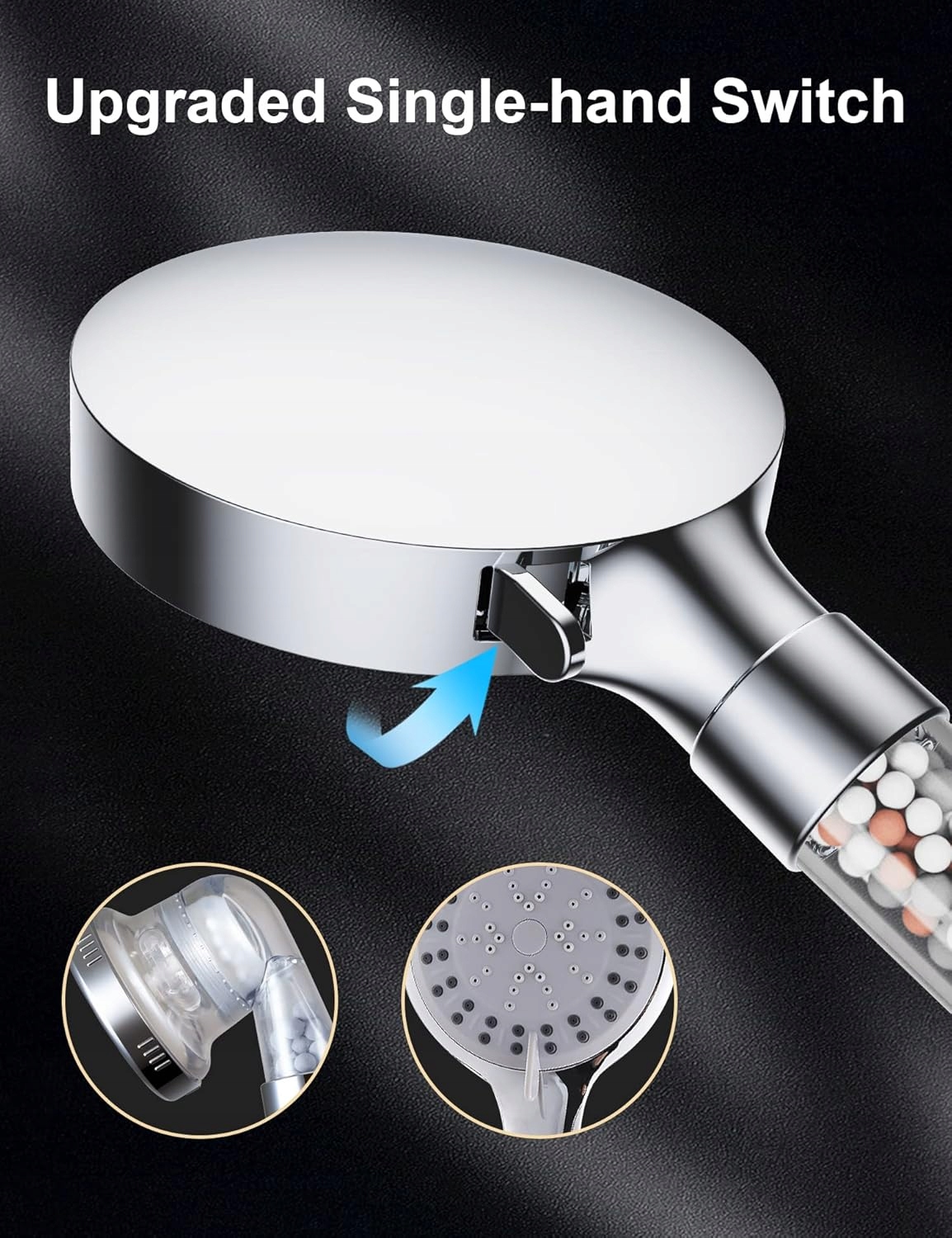 - ➡️Потрійна фільтрація - ця іонна душова лійка з 3 різними мінеральними каменями, які допоможуть видалити хлор і наліт, токсини, важкі метали, бактерії, іржу та запах із води для душу, покращать очищення води та підтримувати pH-баланс води.