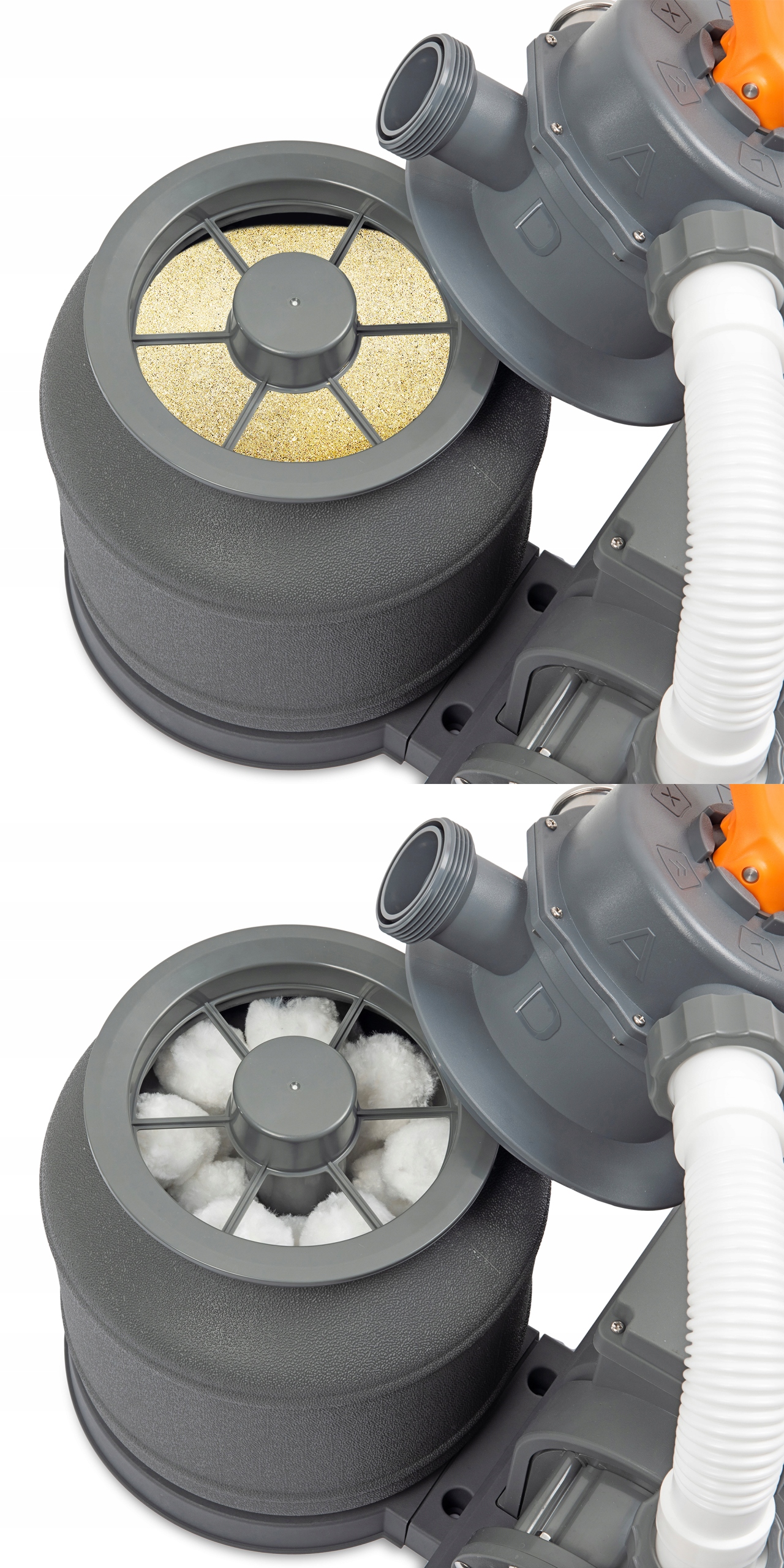 Рекомендується використовувати максимум 8 кг вставки. Це може бути кварцовий пісок або скло. Фільтрувальні кулі також працюють однаково добре. Всередині ємності є трубка, яка повідомляє про мінімальний і максимальний рівень заряду, що значно полегшує нанесення піску.