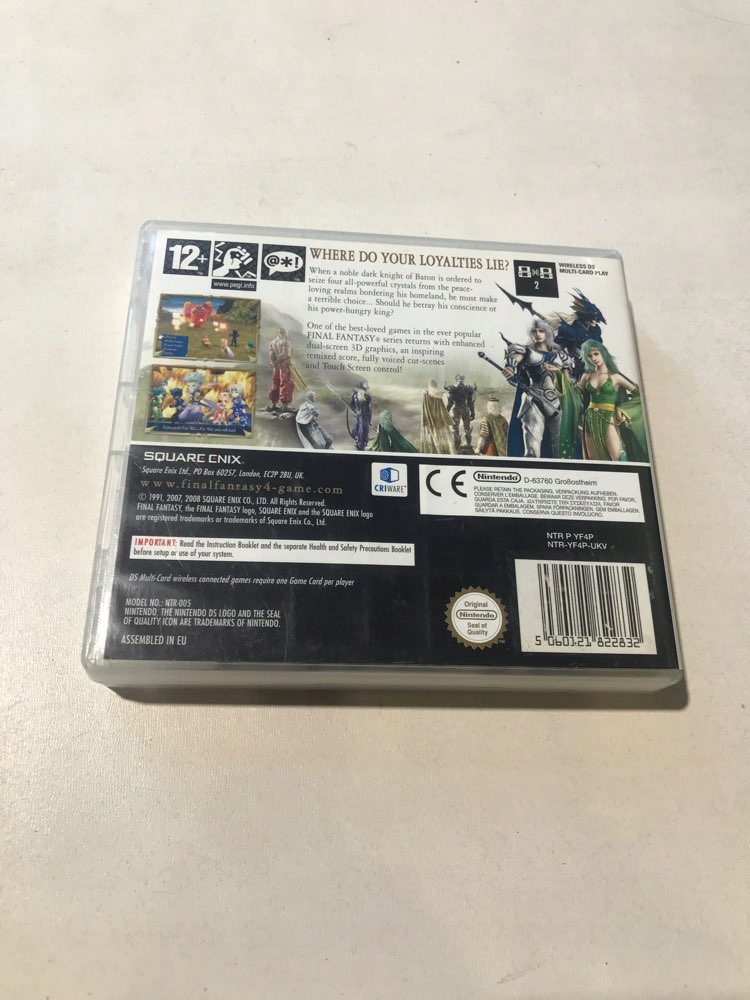Просматривая «ФІНАЛ ФАНТАЗІЯ IV DS», вы можете быть уверены, что данный товар из каталога «Nintendo DS» будет доставлен из Польши и проверен на целостность. В цене товара, указанной на сайте, учтена доставка из Польши. Внимание!!! Товары для Евросоюза, согласно законодательству стран Евросоюза, могут отличаться упаковкой или наполнением.