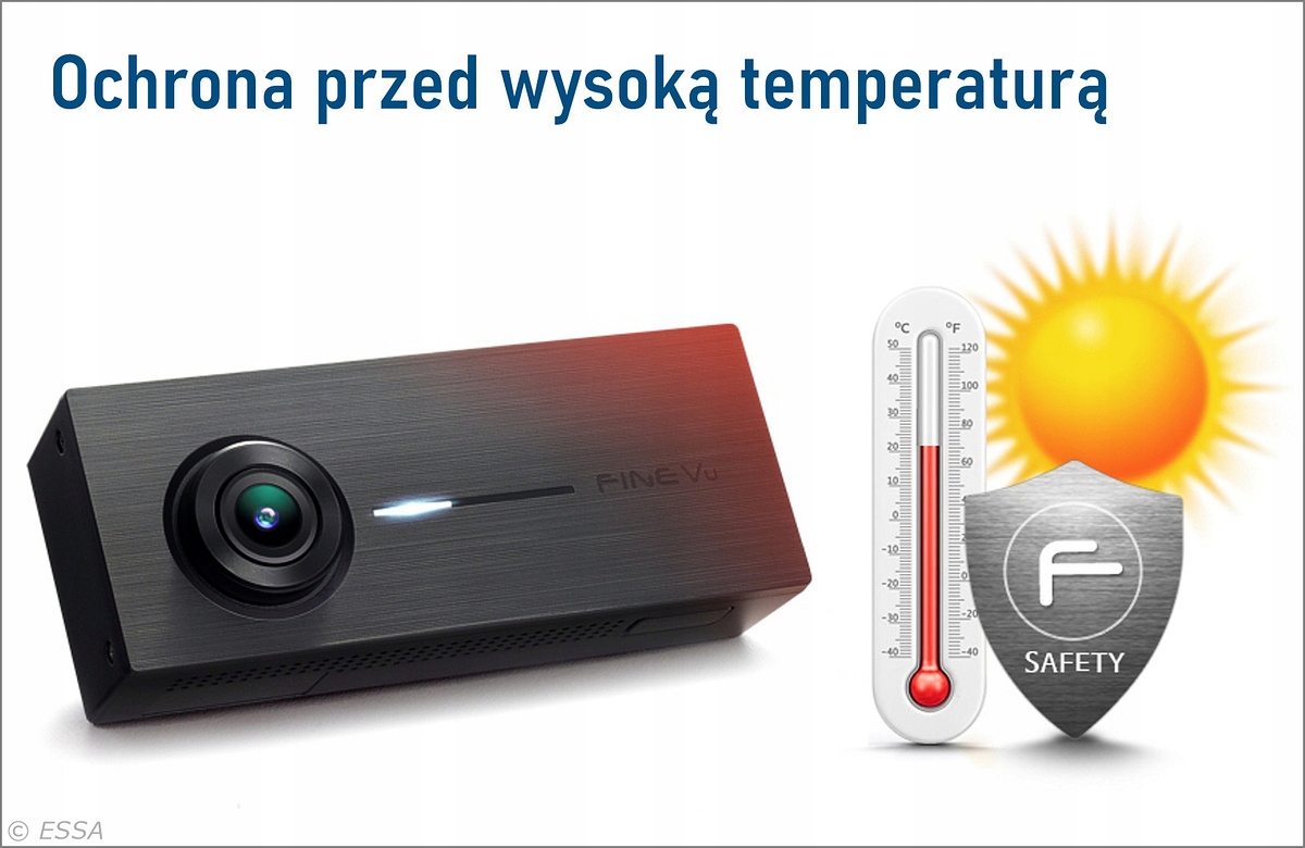 FineVu GX33 розроблено для ефективного відведення тепла. Корпус правильної форми забезпечує дуже хорошу внутрішню рециркуляцію повітря, яка ефективно охолоджує компоненти диктофона. Крім того, електронний захист від високої температури додатково захищає відеореєстратор і відеофайли, що зберігаються на карті пам'яті, від пошкодження внаслідок перегріву. Коли температура повітря в салоні автомобіля перевищує безпечний рівень, FineVu GX33 автоматично вимикається, щоб запобігти перегріву.