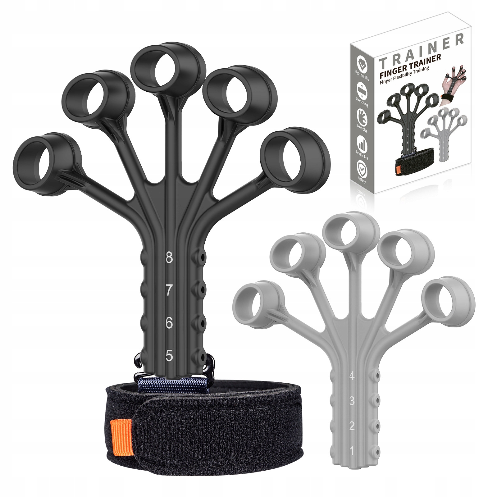 Набір складається з двох частин захвату для пальців. Він доступний у двох кольорах: СІРОМУ (низька потужність) і ЧОРНОМУ (висока потужність), щоб задовольнити різноманітні потреби користувачів.