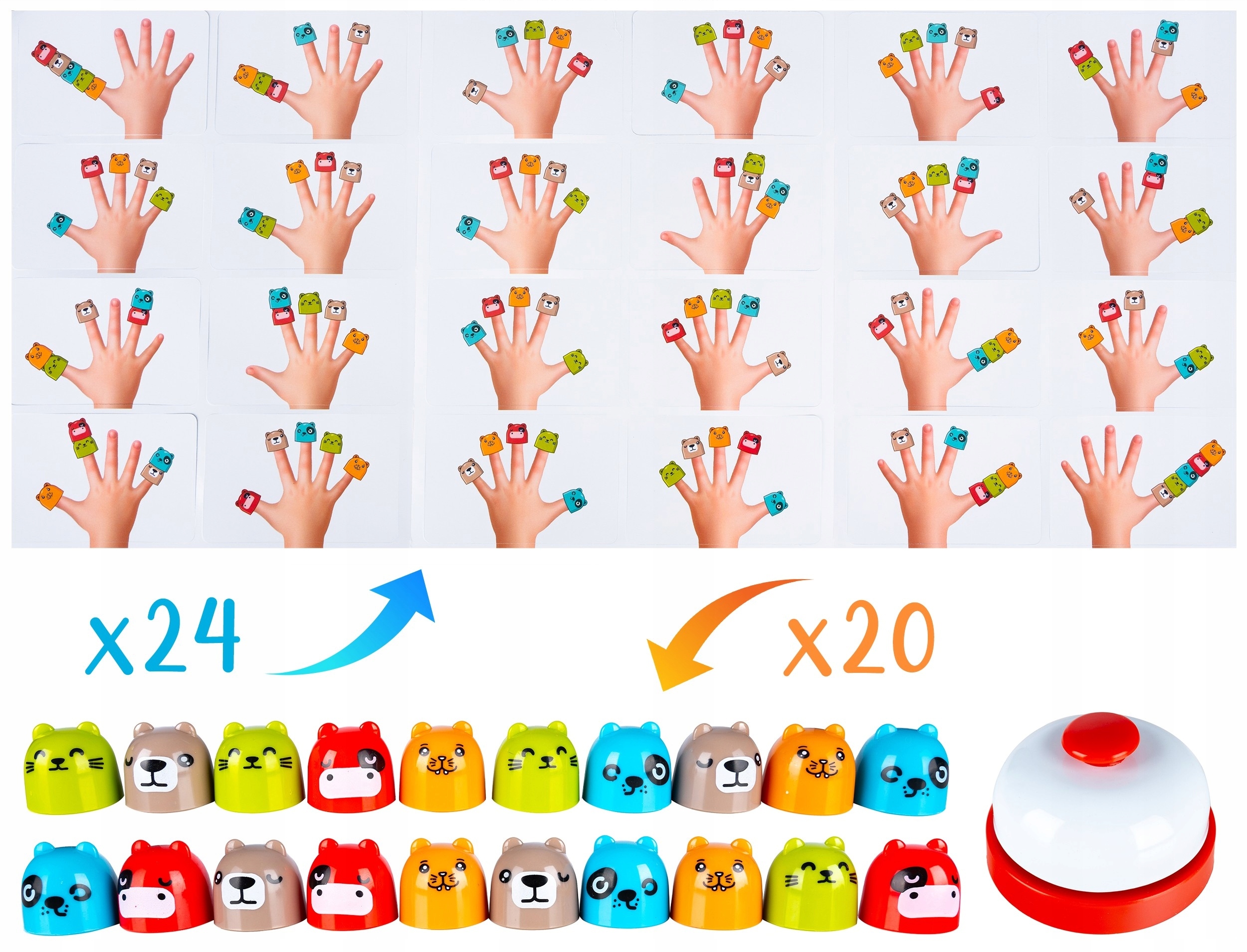 ⭕Аркадна гра, метою якої є зібрати найбільшу кількість карток. Раунд виграє найшвидший гравець, який покладе зображення тварини на свої пальці в порядку, зображеному на малюнку на витягнутій картці.