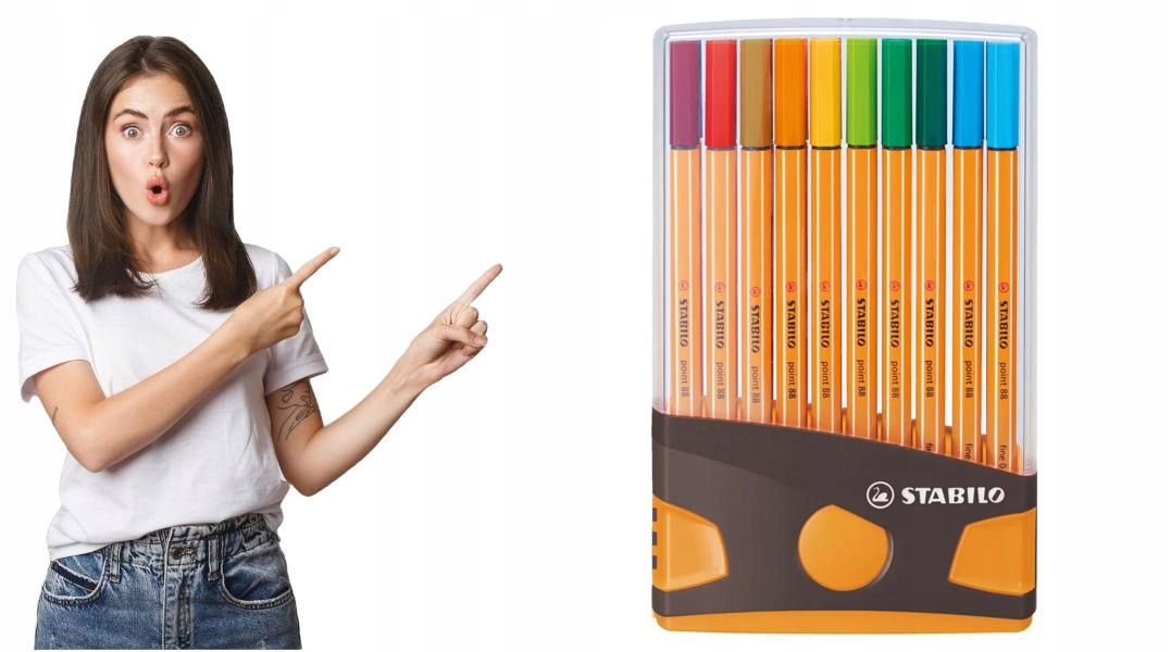 Набір популярних і якісних файнлайнерів STABILO POINT 88. 20 ручок, упакованих в стильну упаковку, яку можна використовувати як підставка для легкого вибору файлайнерів. Fineliners ідеальні писати, виділяти та оформляти текст. Дуже дякую якісне чорнило на водній основі, тонкі лінії гарантують високий стандарт рисунок, а пишучий кінчик стійкий до розшарування та поломки довго не сохне навіть зі знятою кришкою.