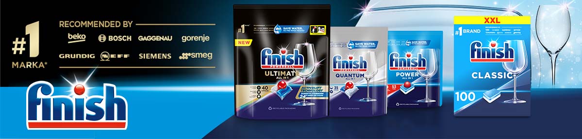 Finish — це бренд номер 1*, рекомендований такими виробниками посудомийних машин, як: Beko, Bosch, Gaggenau, Gorejne, Grundig, Neff, Siemens, Smeg.