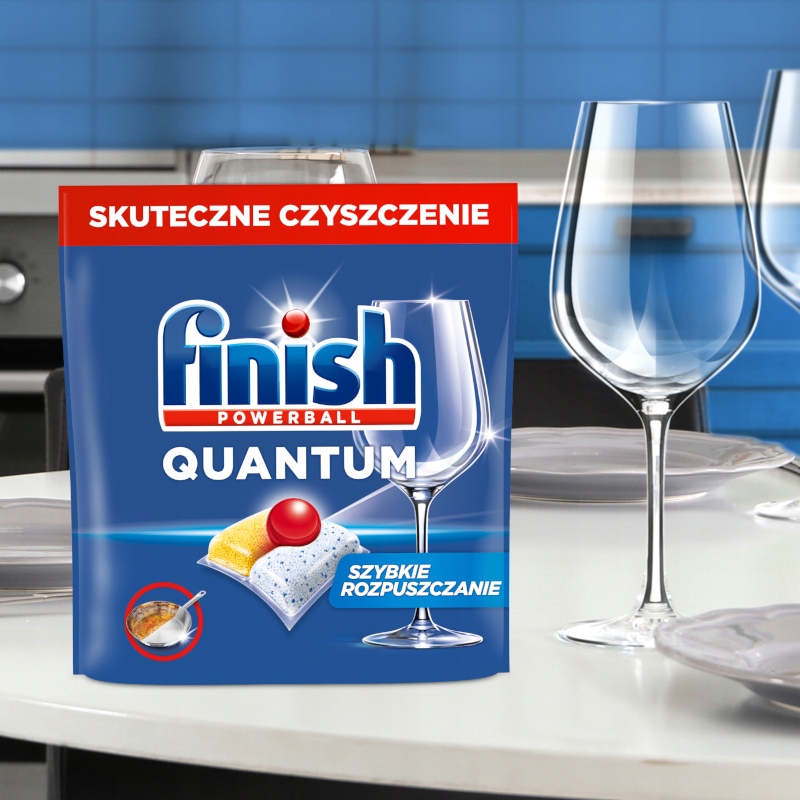 Finish Quantum – це високоякісні капсули для посудомийних машин, які ефективно видаляють забруднення без попереднього ополіскування посуду.