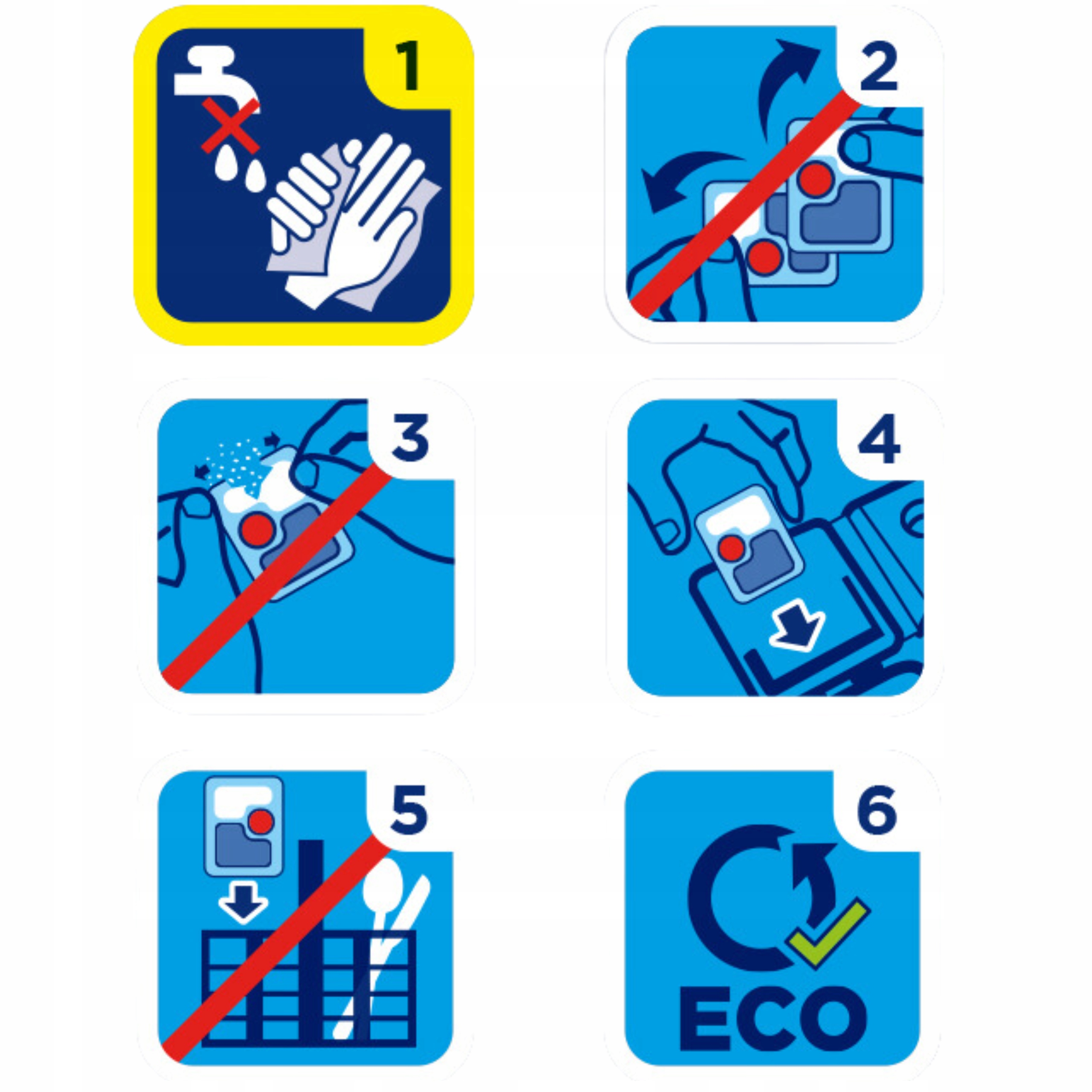 6. Для досягнення найкращих результатів використовуйте еко -або автоматичні програми. Функція солі ефективна у воді з низькою, середньою та високою твердістю до 26 ° с/21ºDH. У випадку з дуже твердою водою використовуйте обробку солі для посудомийних машин. Для того, щоб захистити якість фінішних квантових капсул, завжди щільно закрийте сумку і зберігайте її від джерел тепла та вологи. Закінчика шліфувальної рідини рекомендується для найкращих ефектів сушіння.