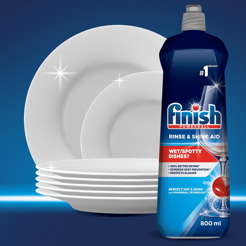 ✅ Надає ідеального блиску: ополіскувач Finish надає посуду та склянкам сліпучого блиску, завдяки чому вони виглядають як нові.